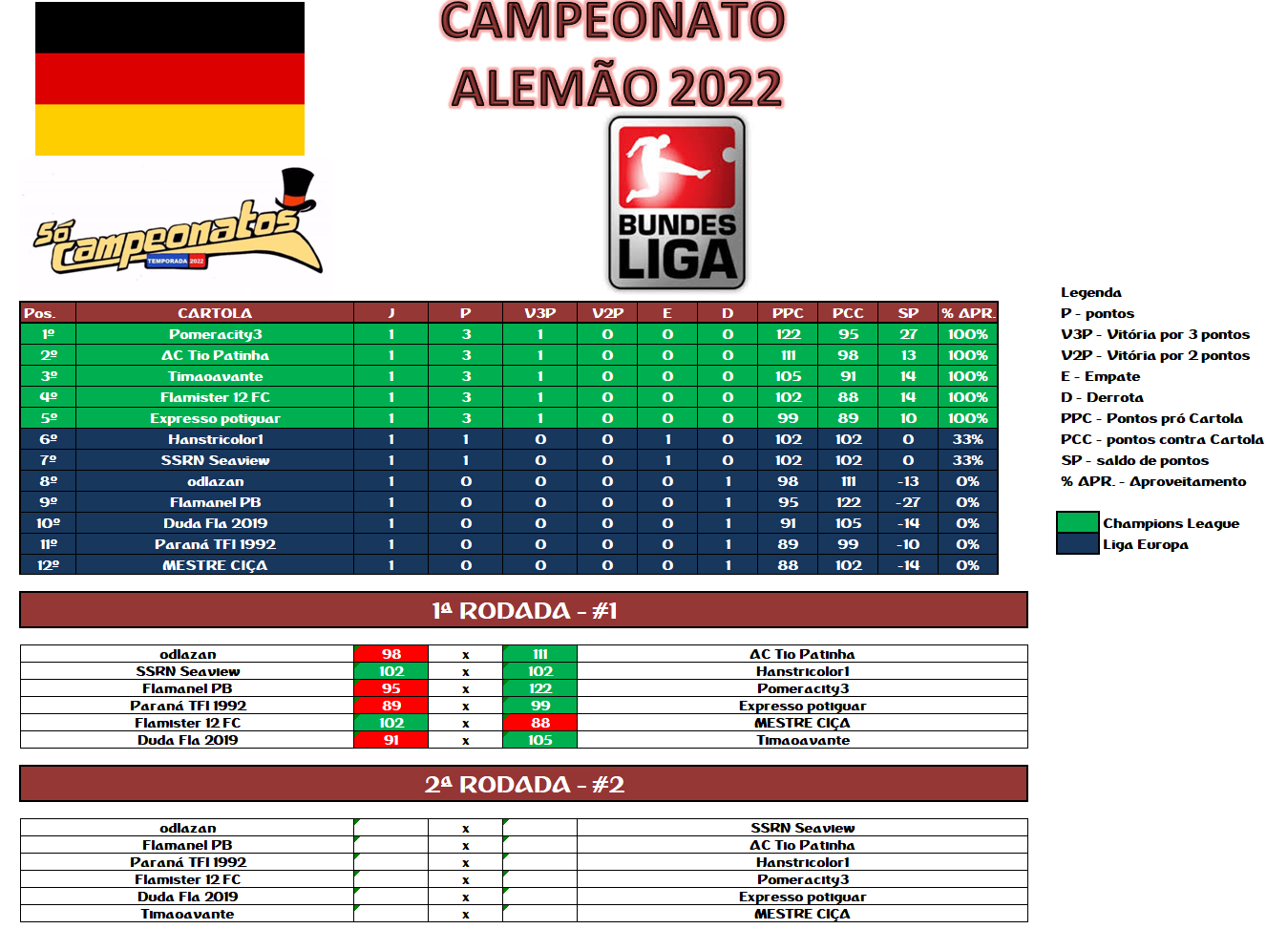 CLASSIFICAÇÃO CAMPEONATO ALEMÃO