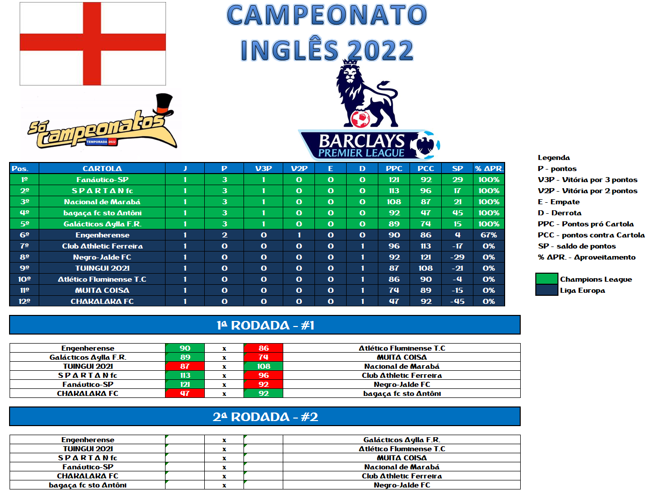 CLASSIFICAÇÃO CAMPEONATO INGLÊS