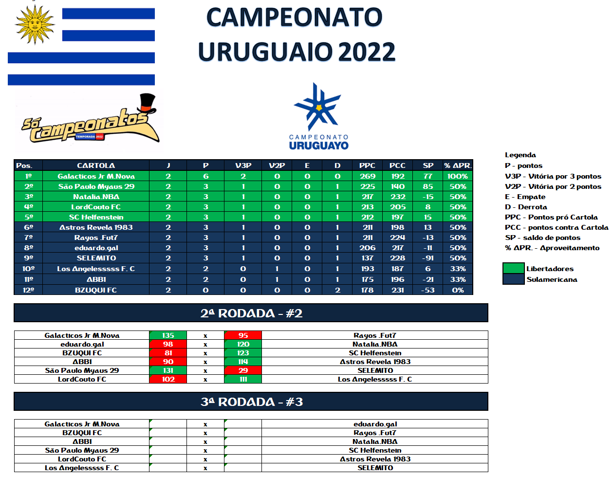 CLASSIFICAÇÃO COPA DO URUGUAI