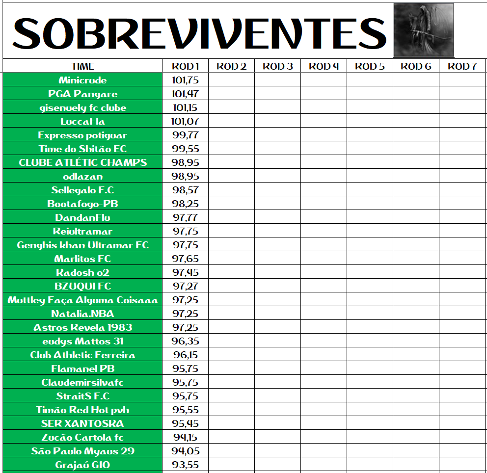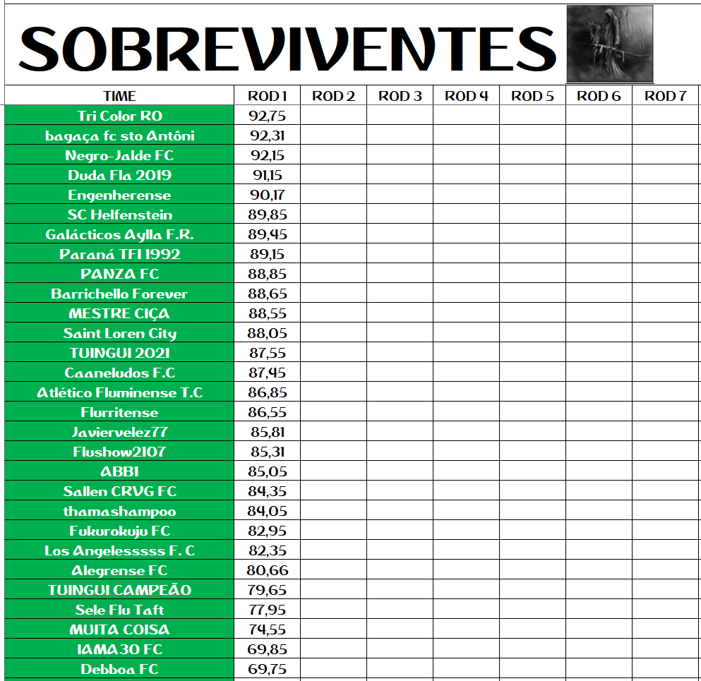 SOBREVIVENTES DA TEMPORADA – RODADA 1