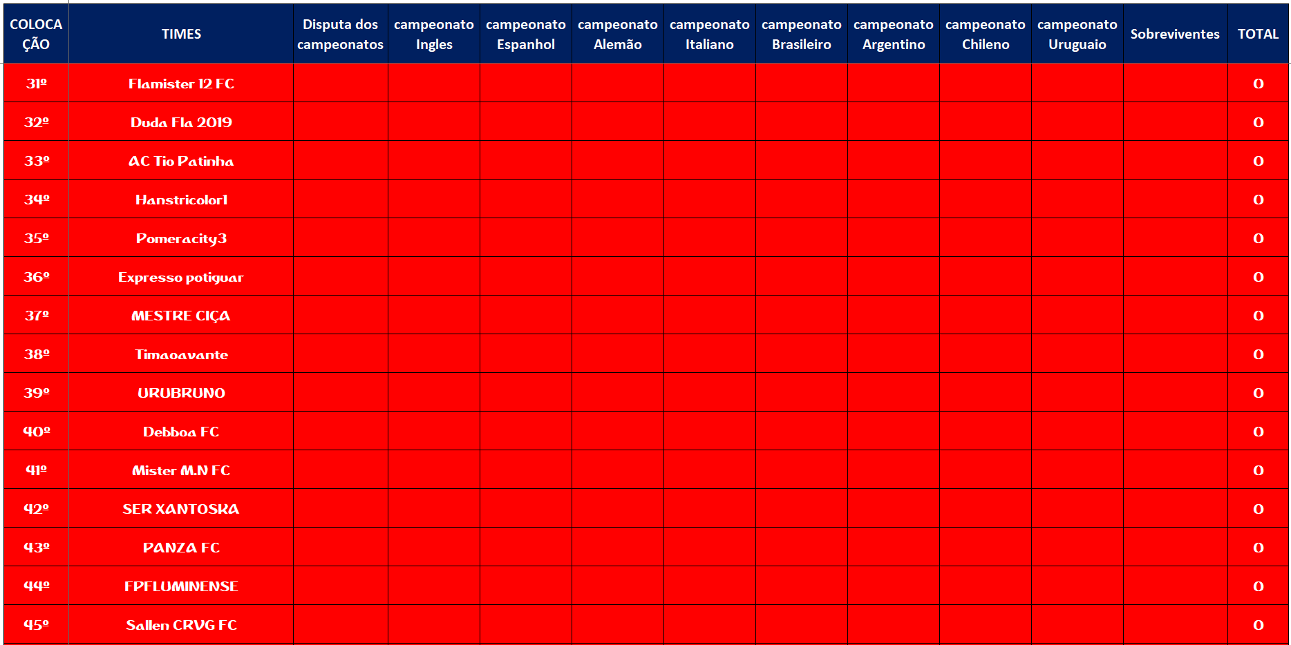 TABELA – O MAIOR CAMPEONATOS DA HISTÓRIA