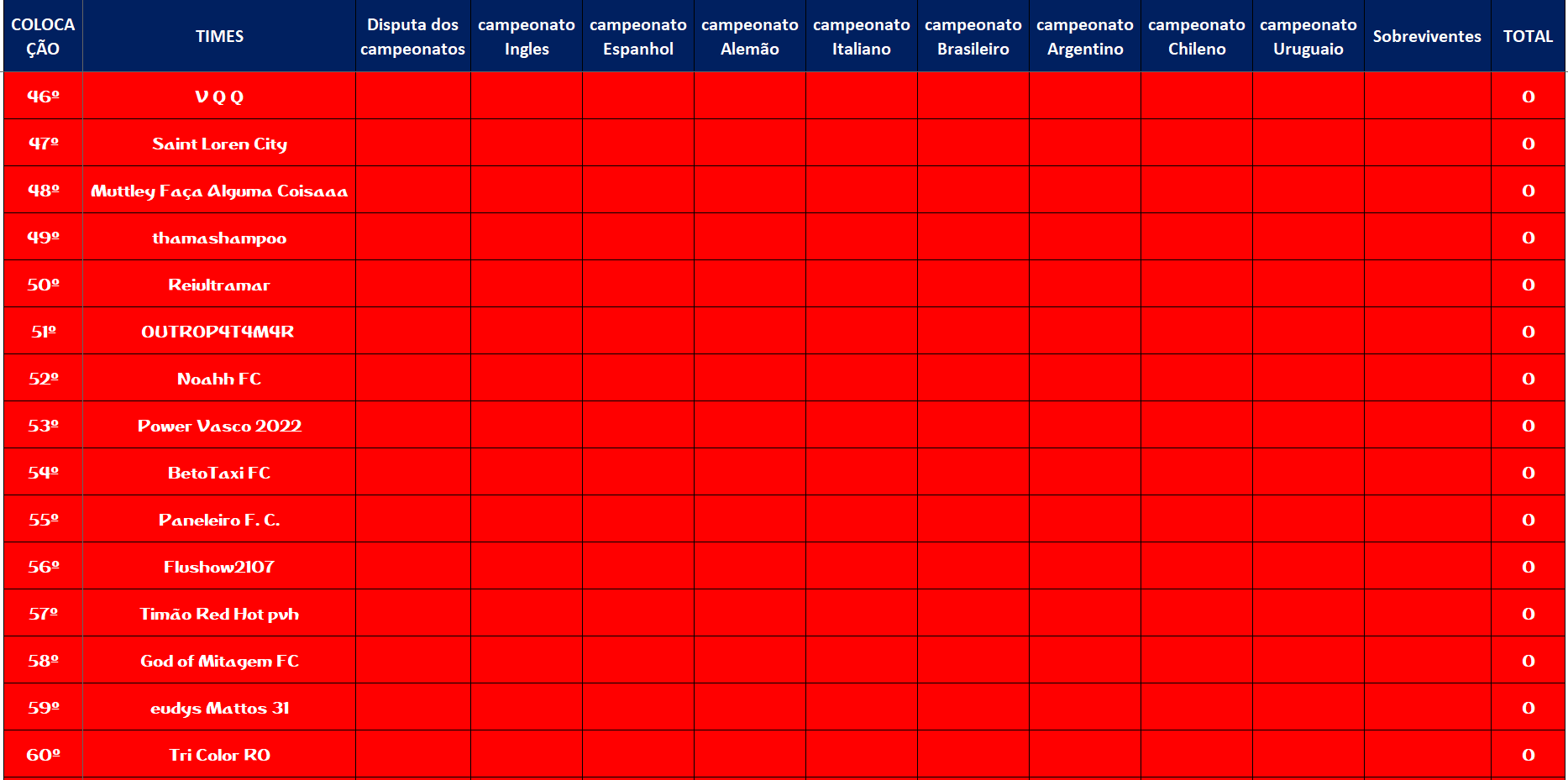 CLASSIFICAÇÃO – O MAIOR CAMPEONATOS DA HISTÓRIA