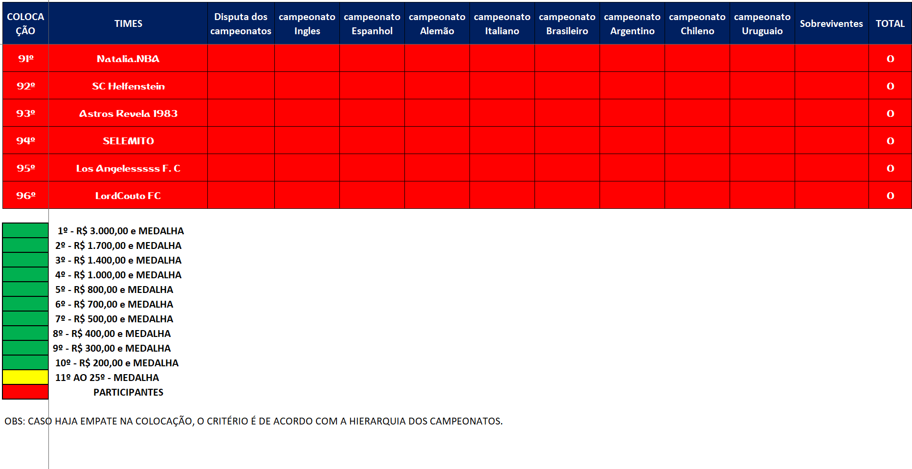 REGULAMENTO – O MAIOR CAMPEONATOS DA HISTÓRIA