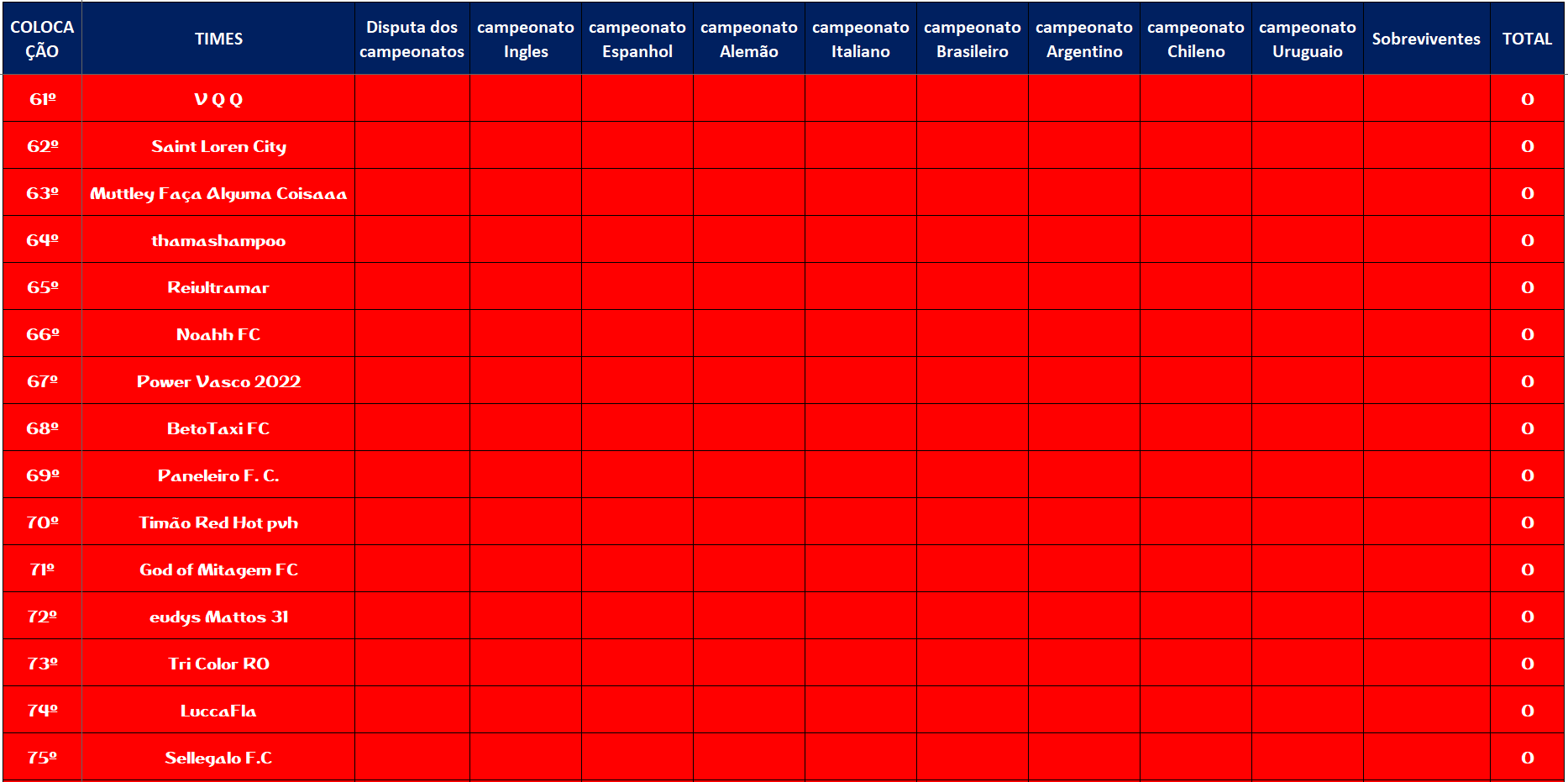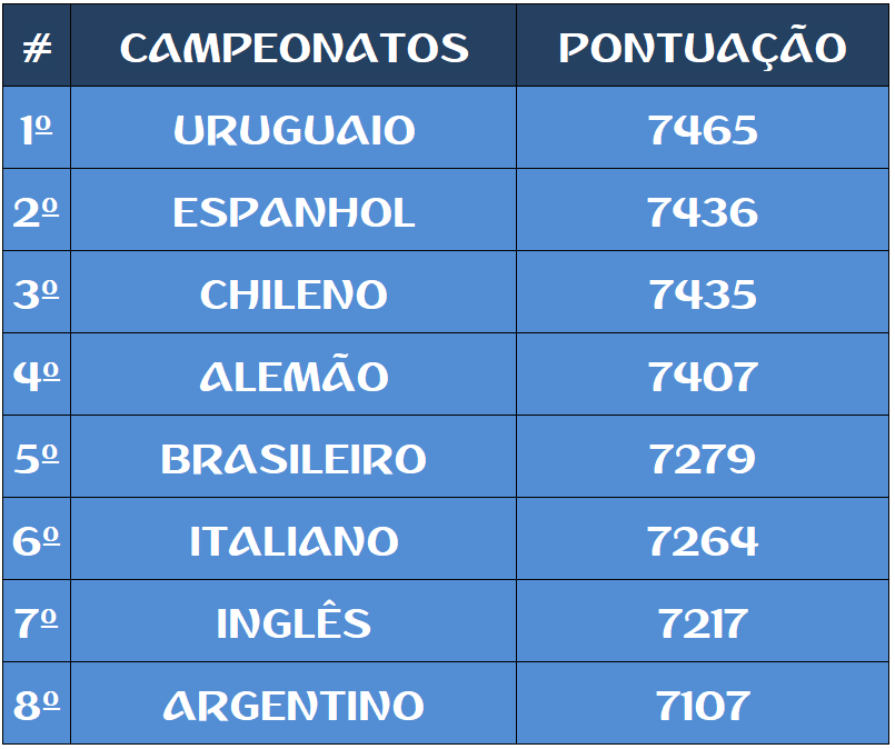 CLASSIFICAÇÃO – O MAIOR CAMPEONATOS DA HISTÓRIA