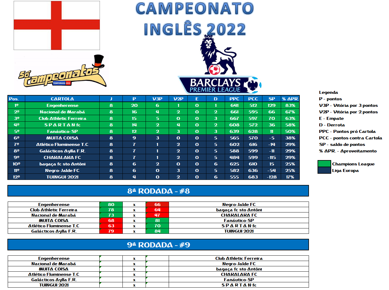 CAMPEONATO INGLÊS – RODADA 8