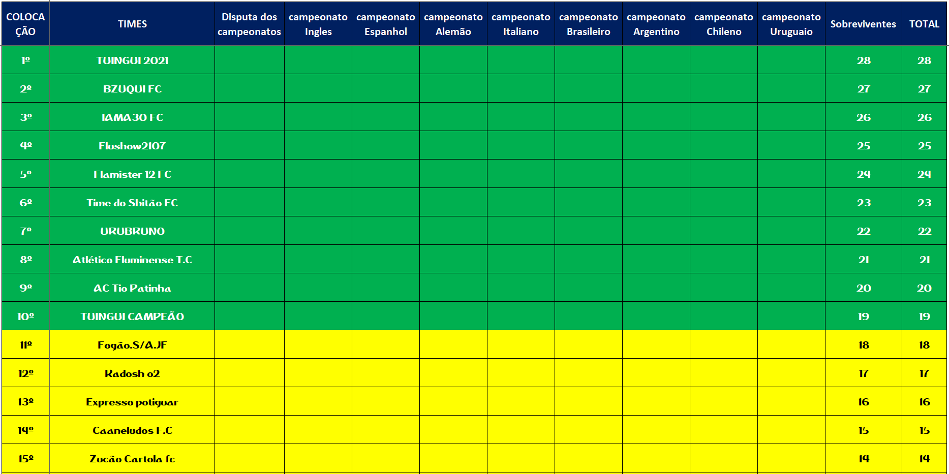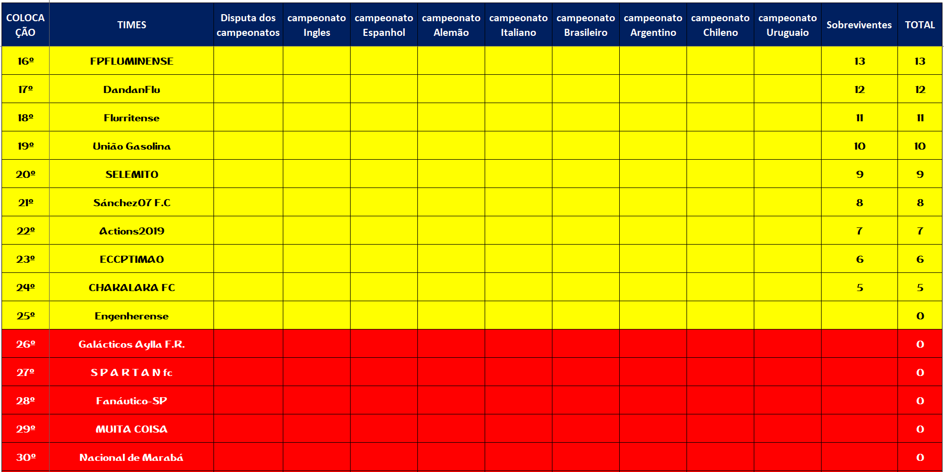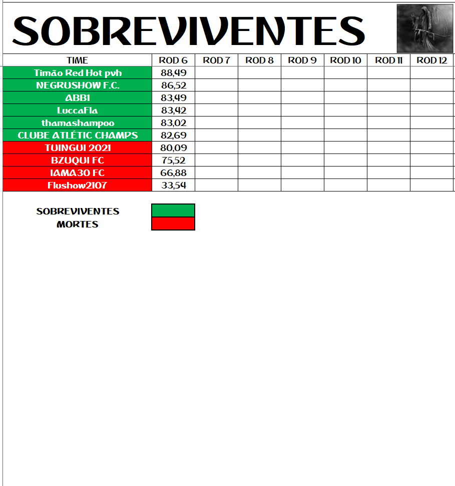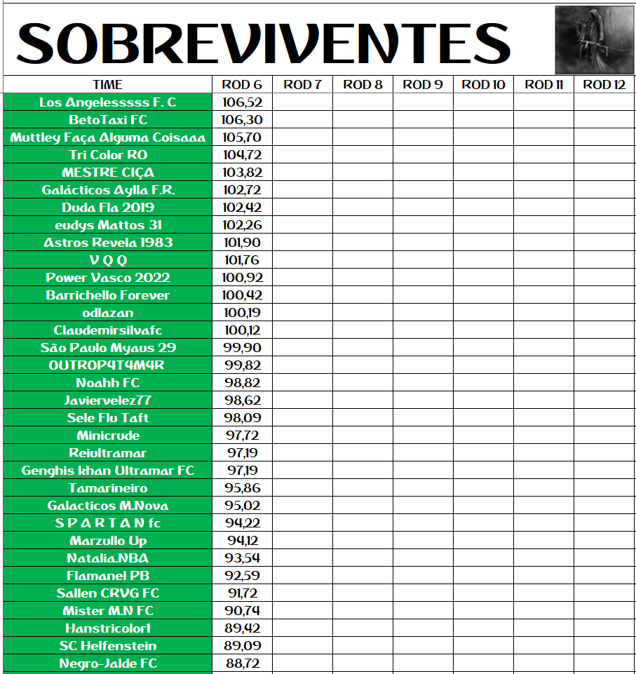 SOBREVIVENTES DA TEMPORADA – RODADA 6