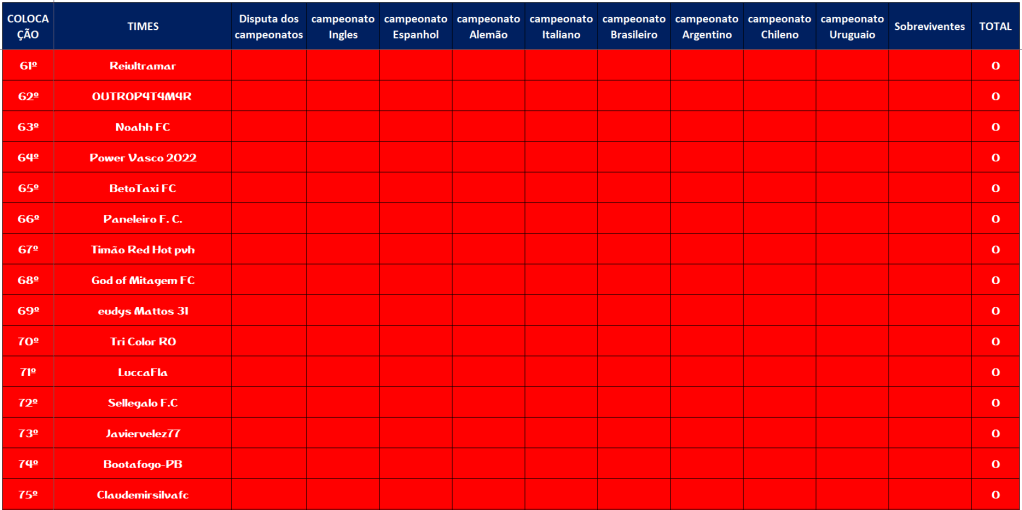 CLASSIFICAÇÃO – O MAIOR CAMPEONATOS DA HISTÓRIA