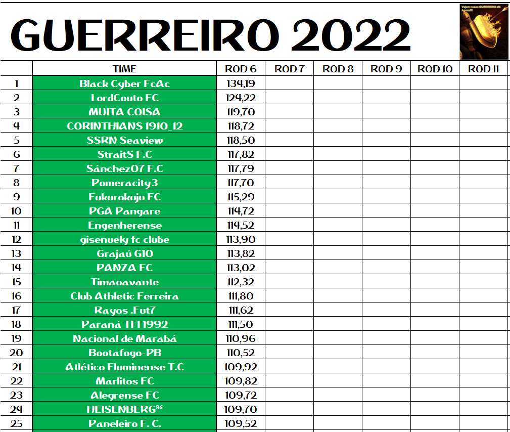 DISPUTA DO GUERREIRO – RODADA 6