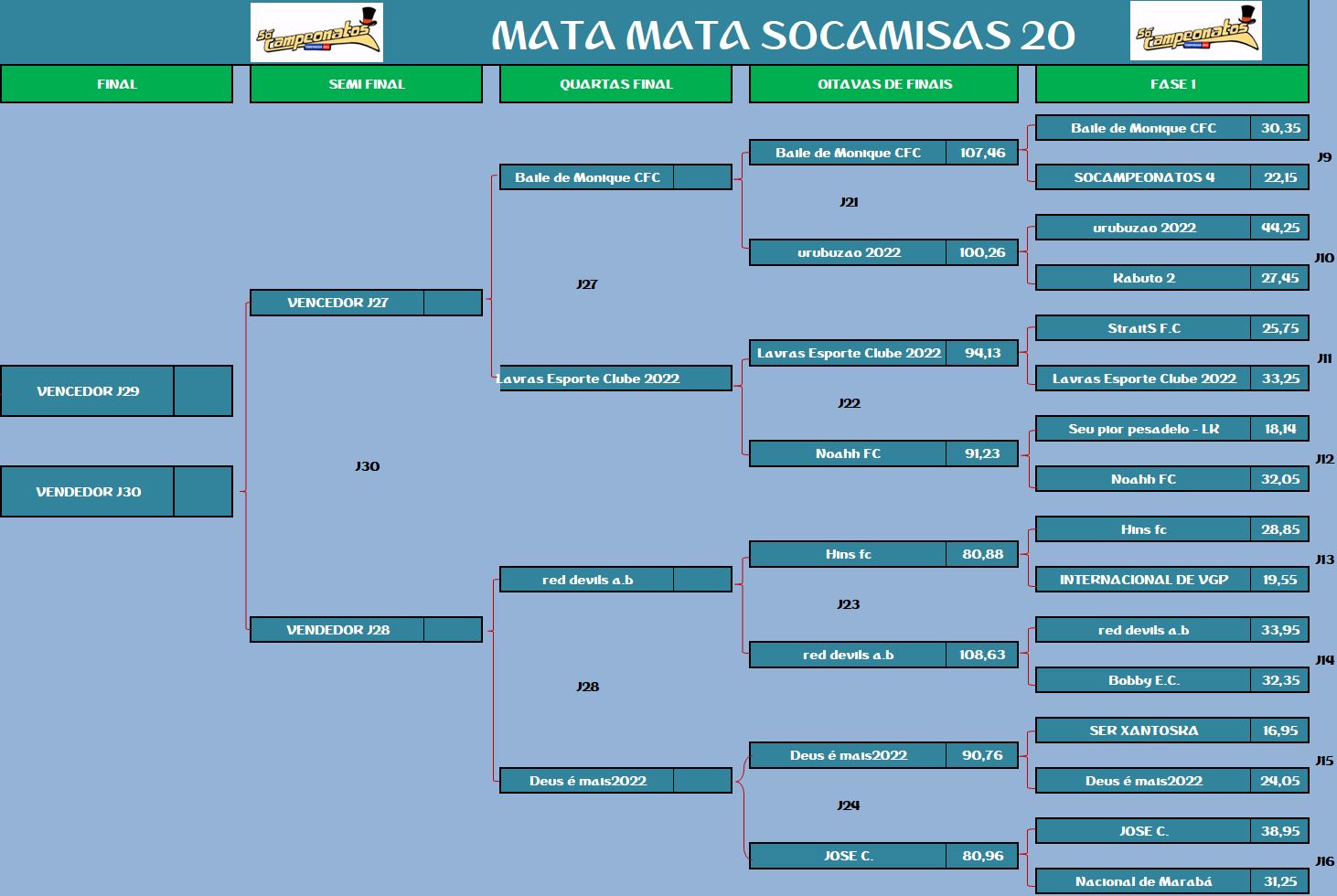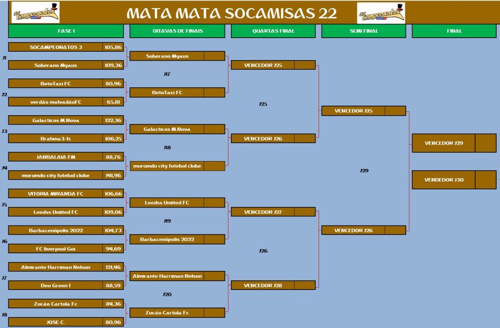 COPA DA INGLATERRA – QUARTAS DE FINAIS E DISPUTA DO 9º LUGAR – IDA Publicado em 10/06/2022 por socampeonatos