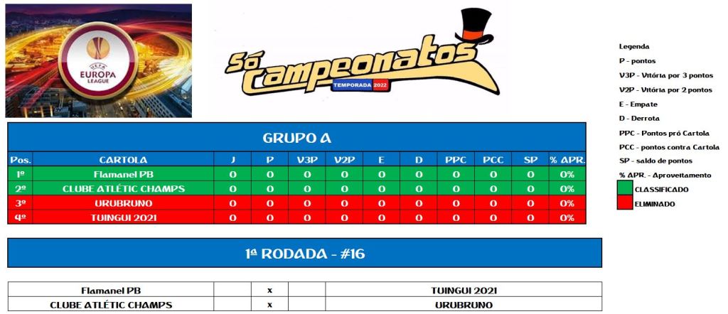 CHAMPIONS LEAGUE SOCAMPEONATOS TABELA