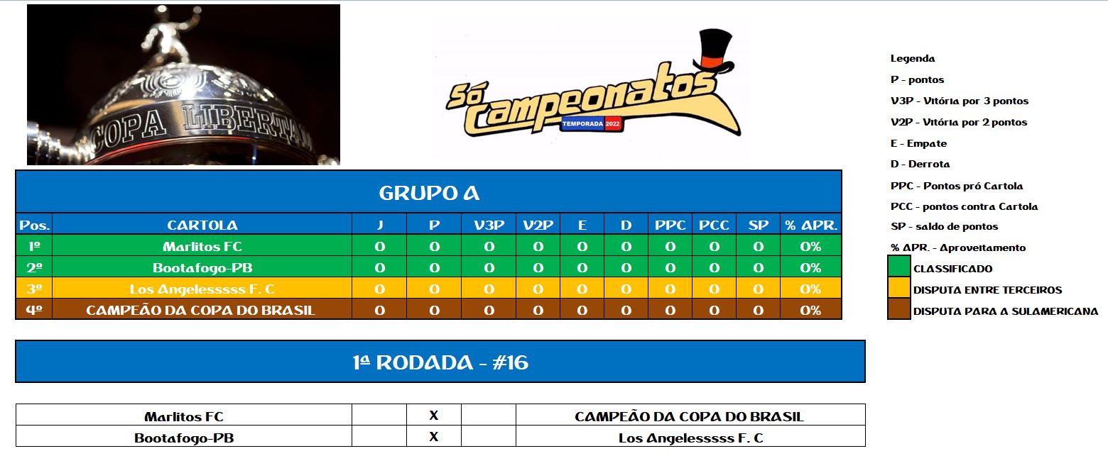 LIBERTADORES SOCAMPEONATOS TABELA