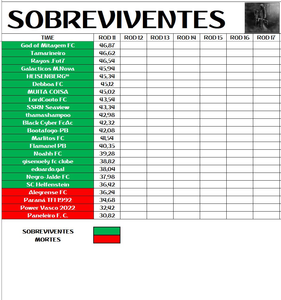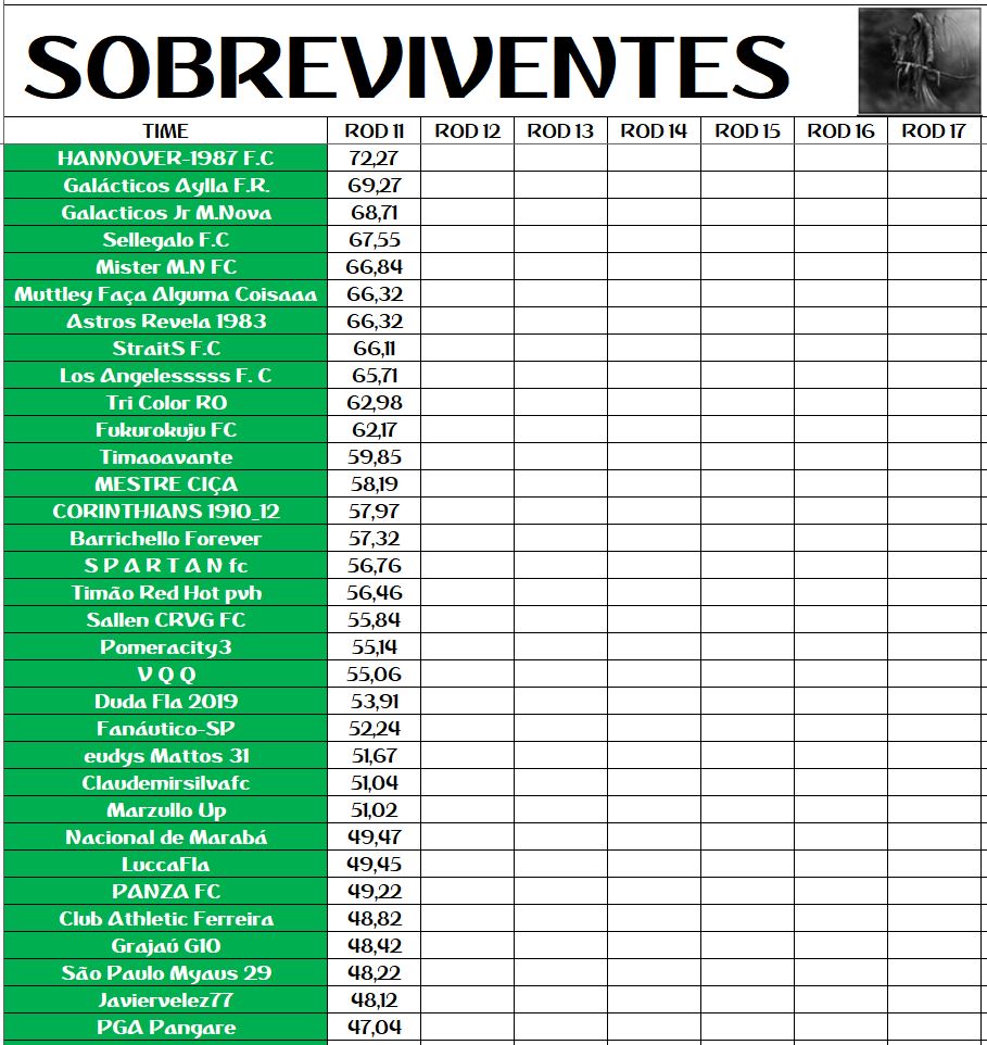 SOBREVIVENTES DA TEMPORADA – RODADA 11