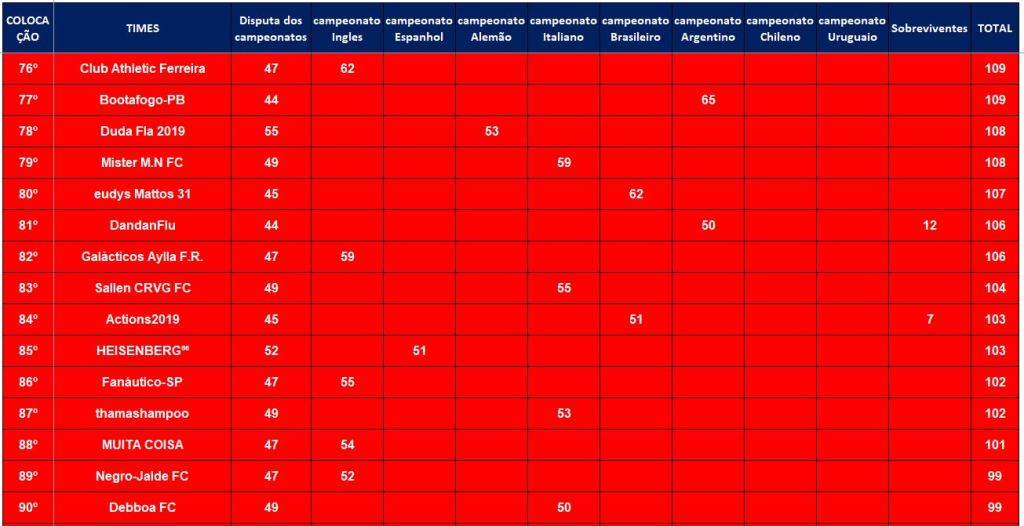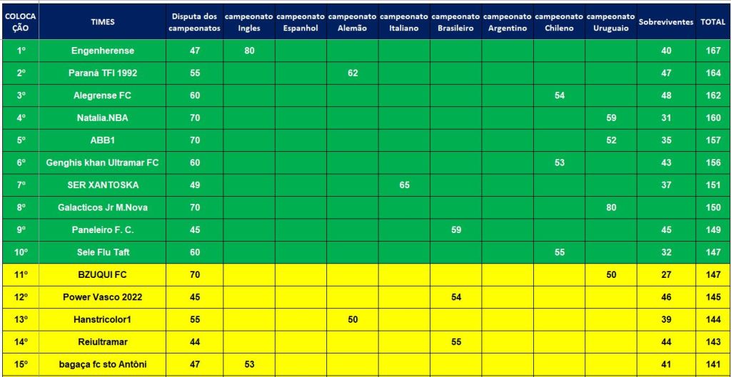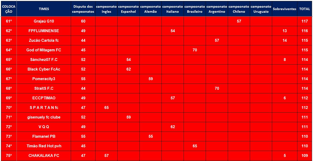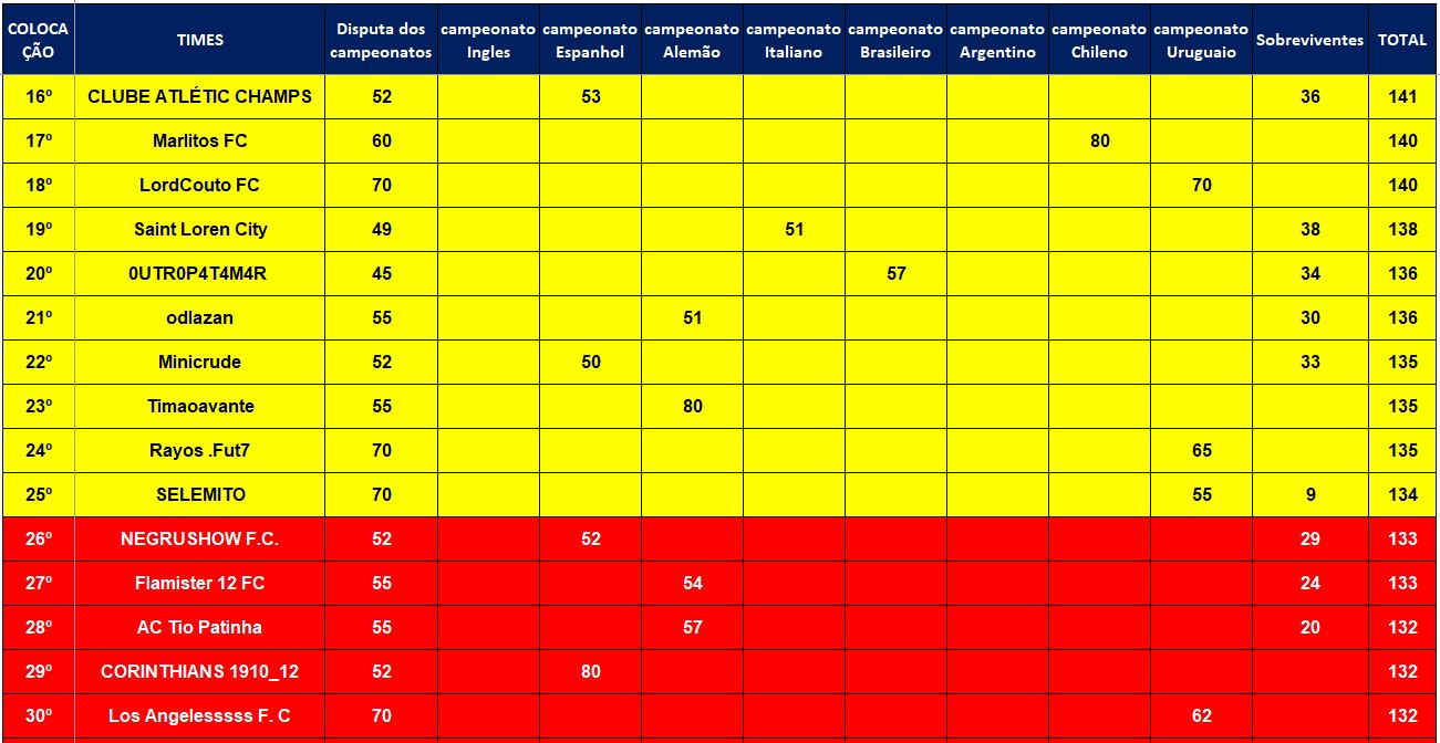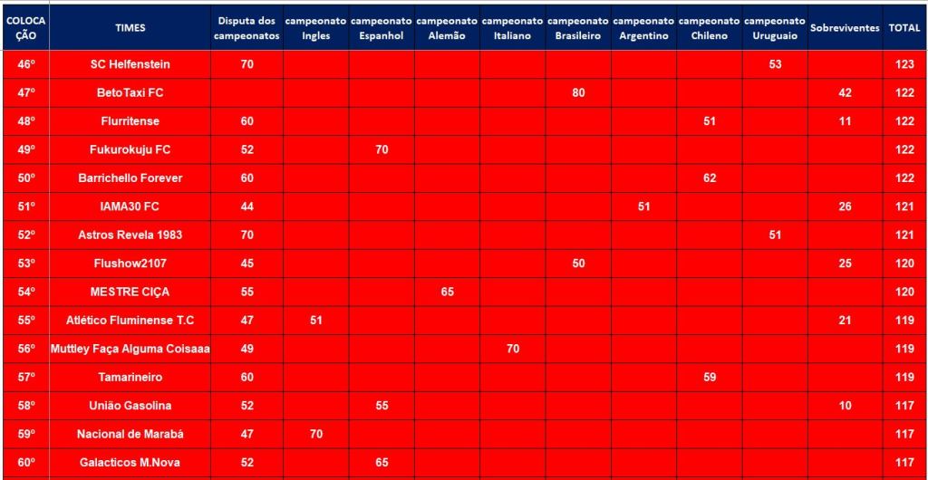 CLASSIFICAÇÃO – O MAIOR CAMPEONATOS DA HISTÓRIA