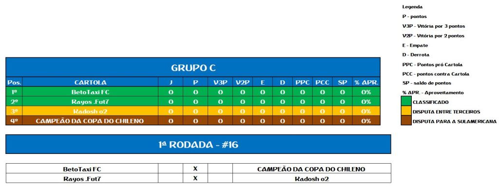 TABELA COPA DO CHILE