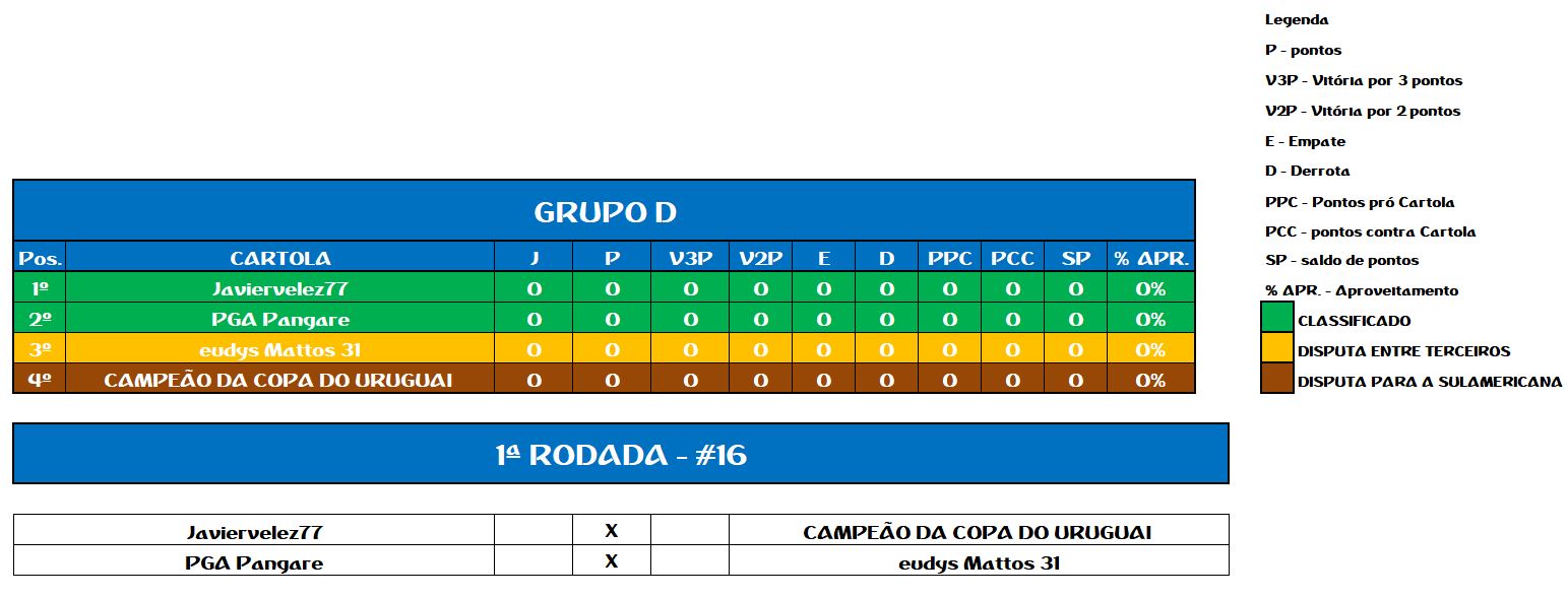 TABELA COPA DO URUGUAI