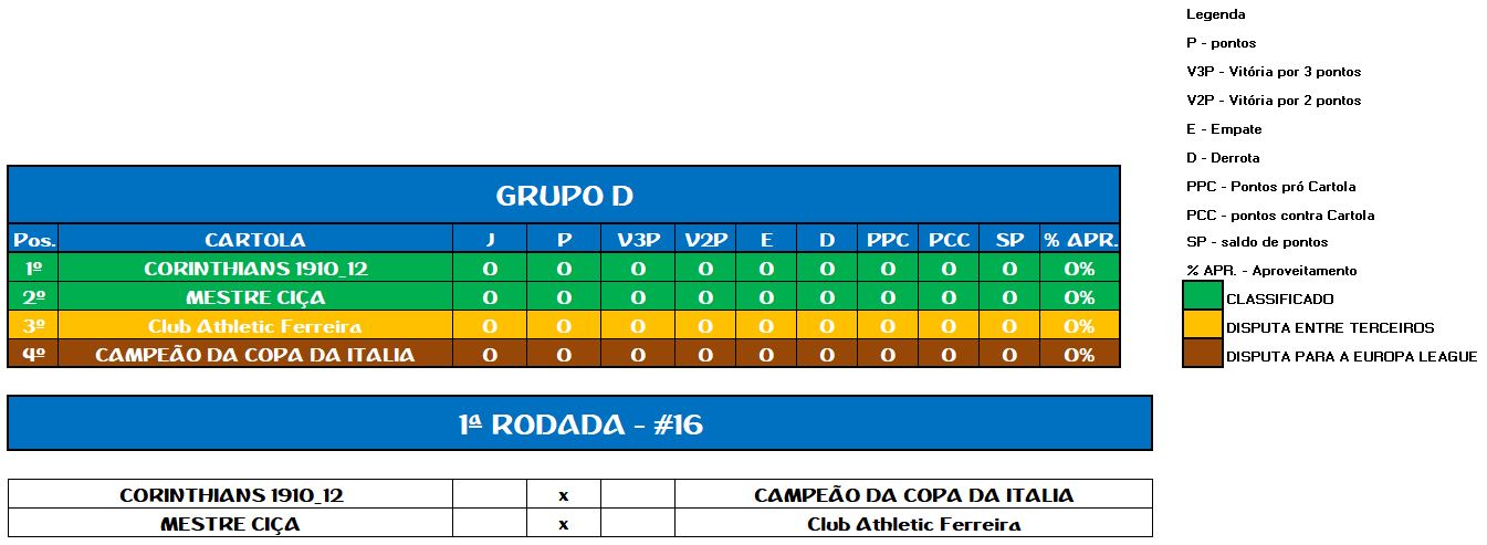 TABELA COPA DA ITALIA
