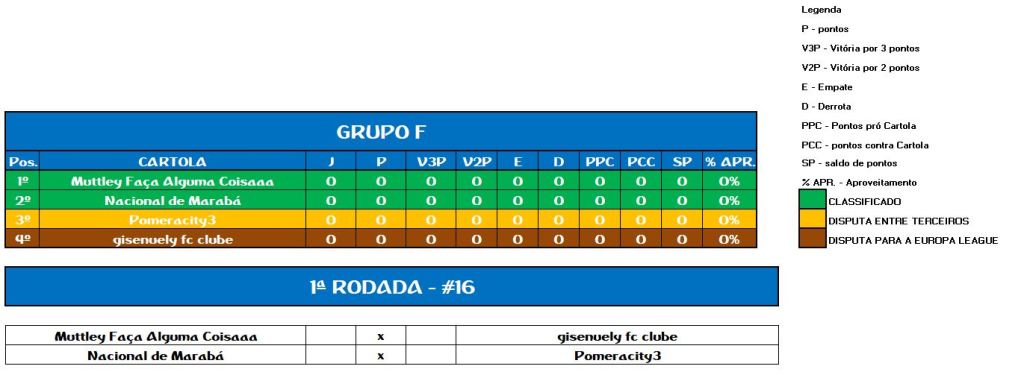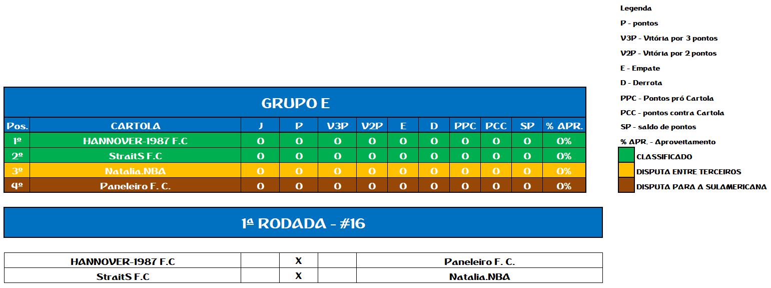 TABELA COPA DA ALEMANHA
