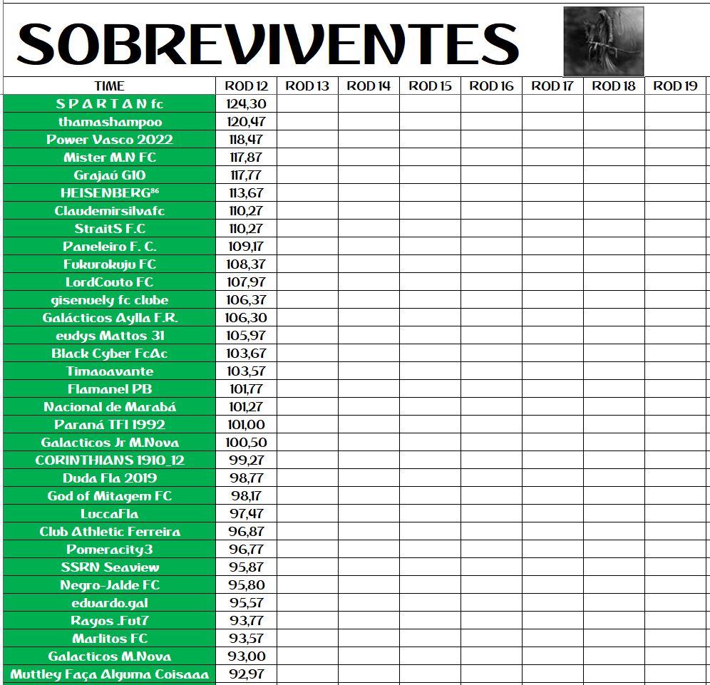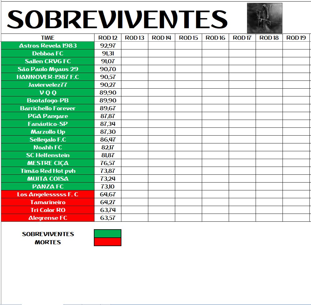 SOBREVIVENTES DA TEMPORADA – RODADA 12
