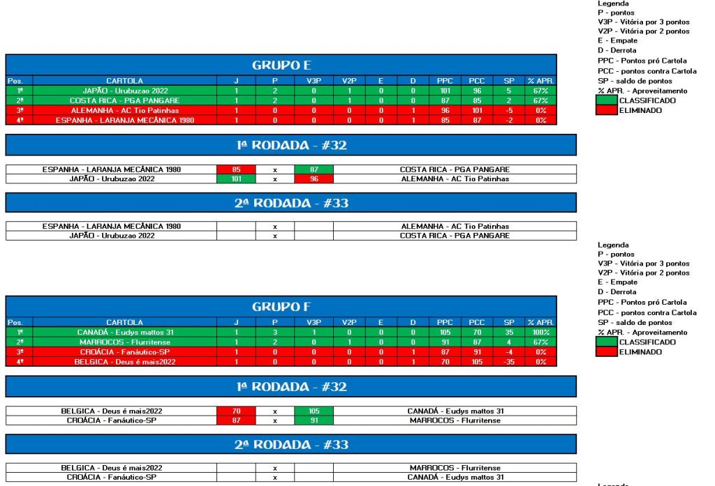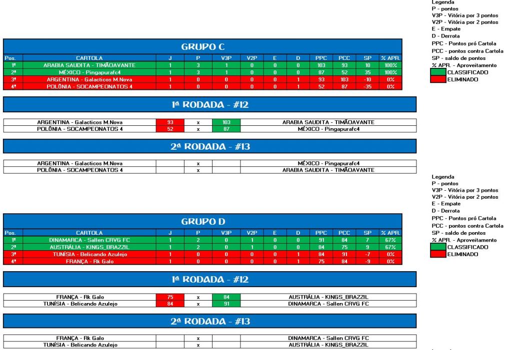 B – O times melhor classificado passará para as Oitavas de Finais;