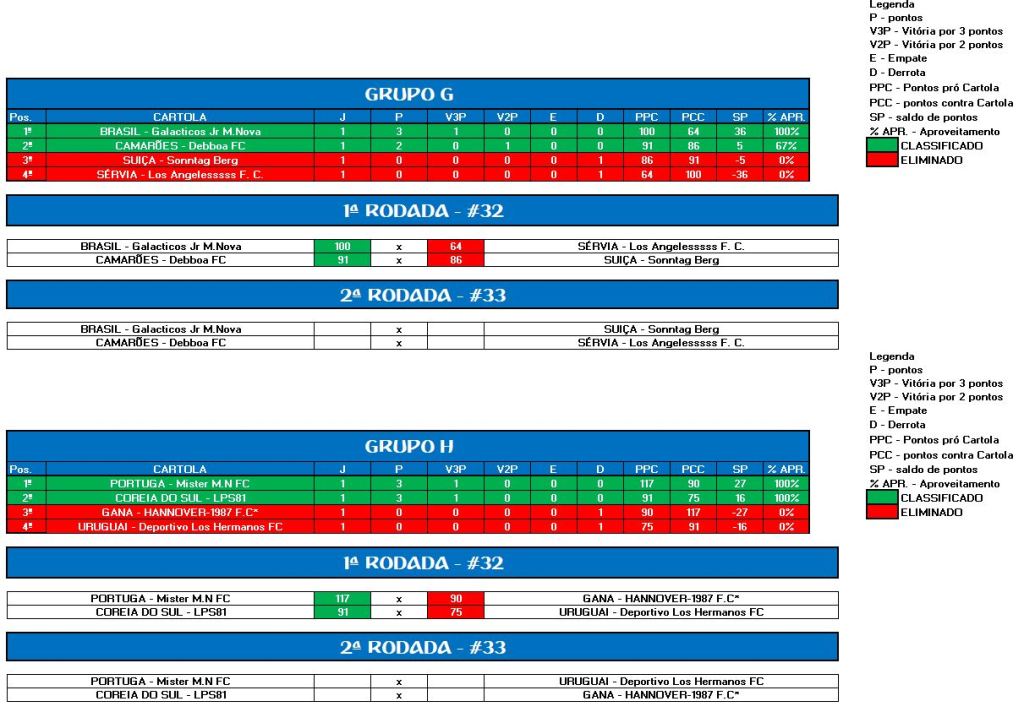 7 – Serão Classificados para as Oitavas de Finais os 1ºs colocados de cada grupo.