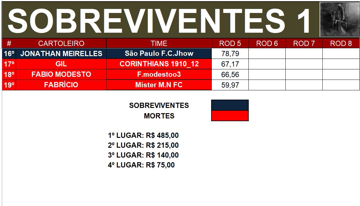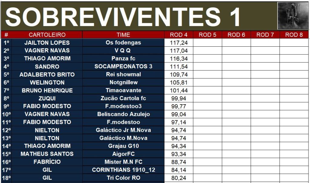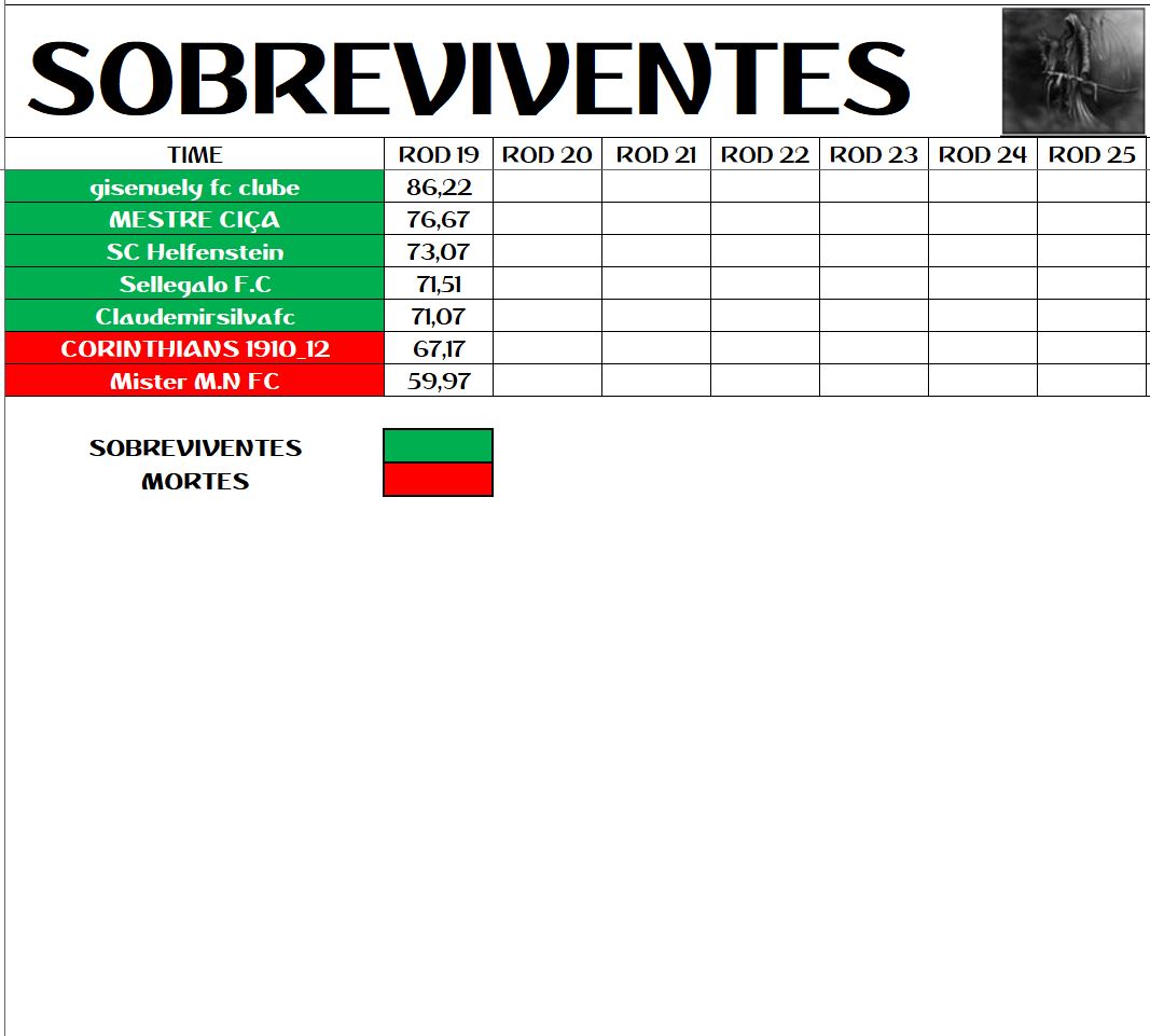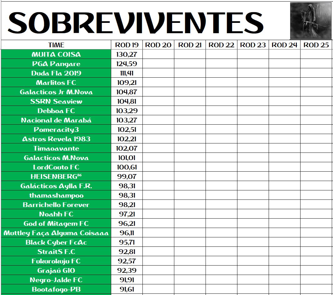 SOBREVIVENTES DA TEMPORADA – RODADA 19