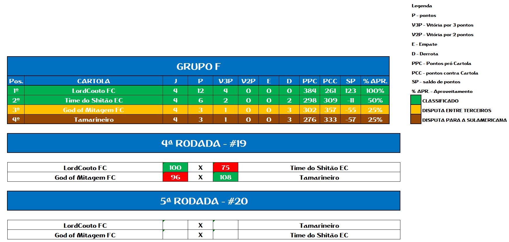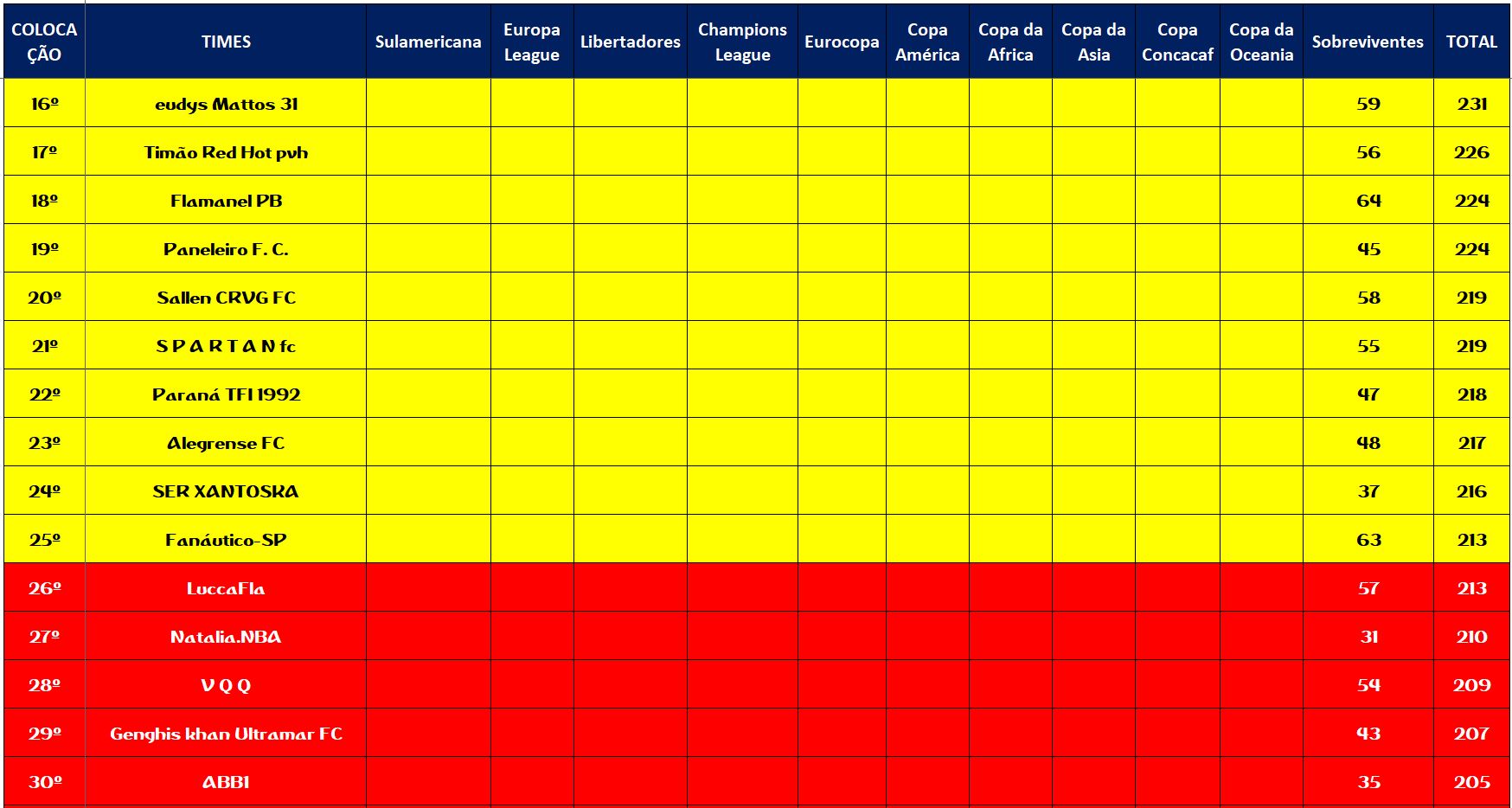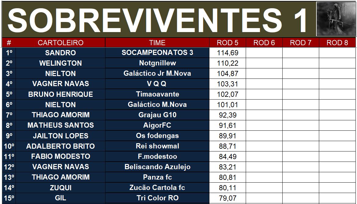 SOBREVIVENTES DA TEMPORADA – RODADA 19