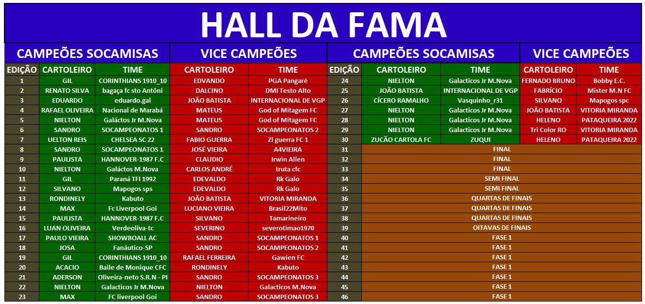 HALL DA FAMA – MATA MATA SOCAMISAS