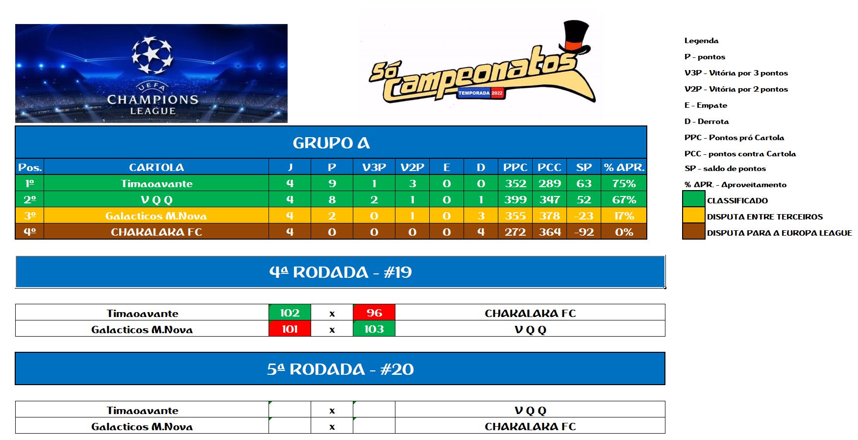 CHAMPIONS LEAGUE SOCAMPEONATOS TABELA