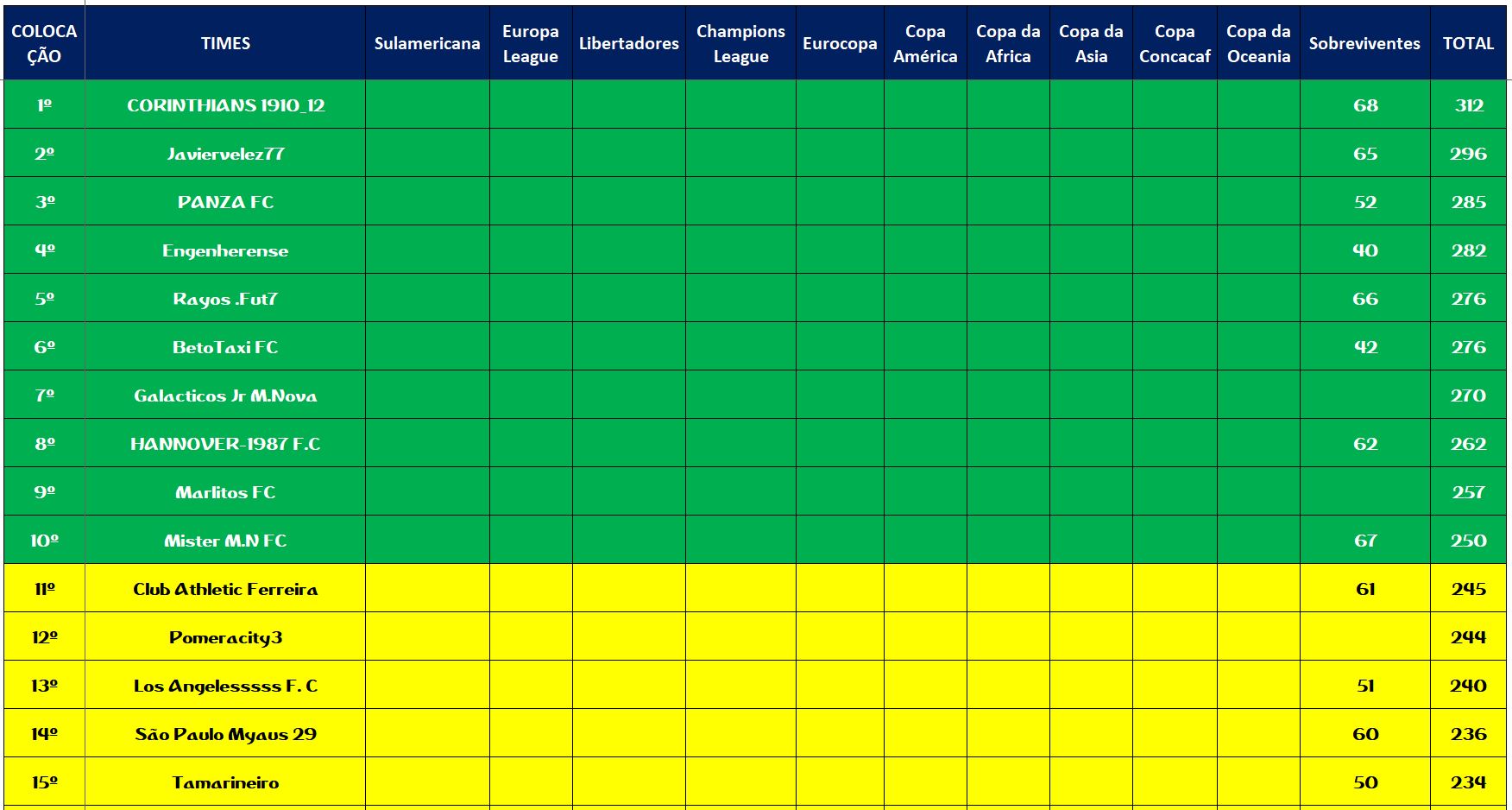CLASSIFICAÇÃO COPA DO MUNDO SOCAMPEONATOS
