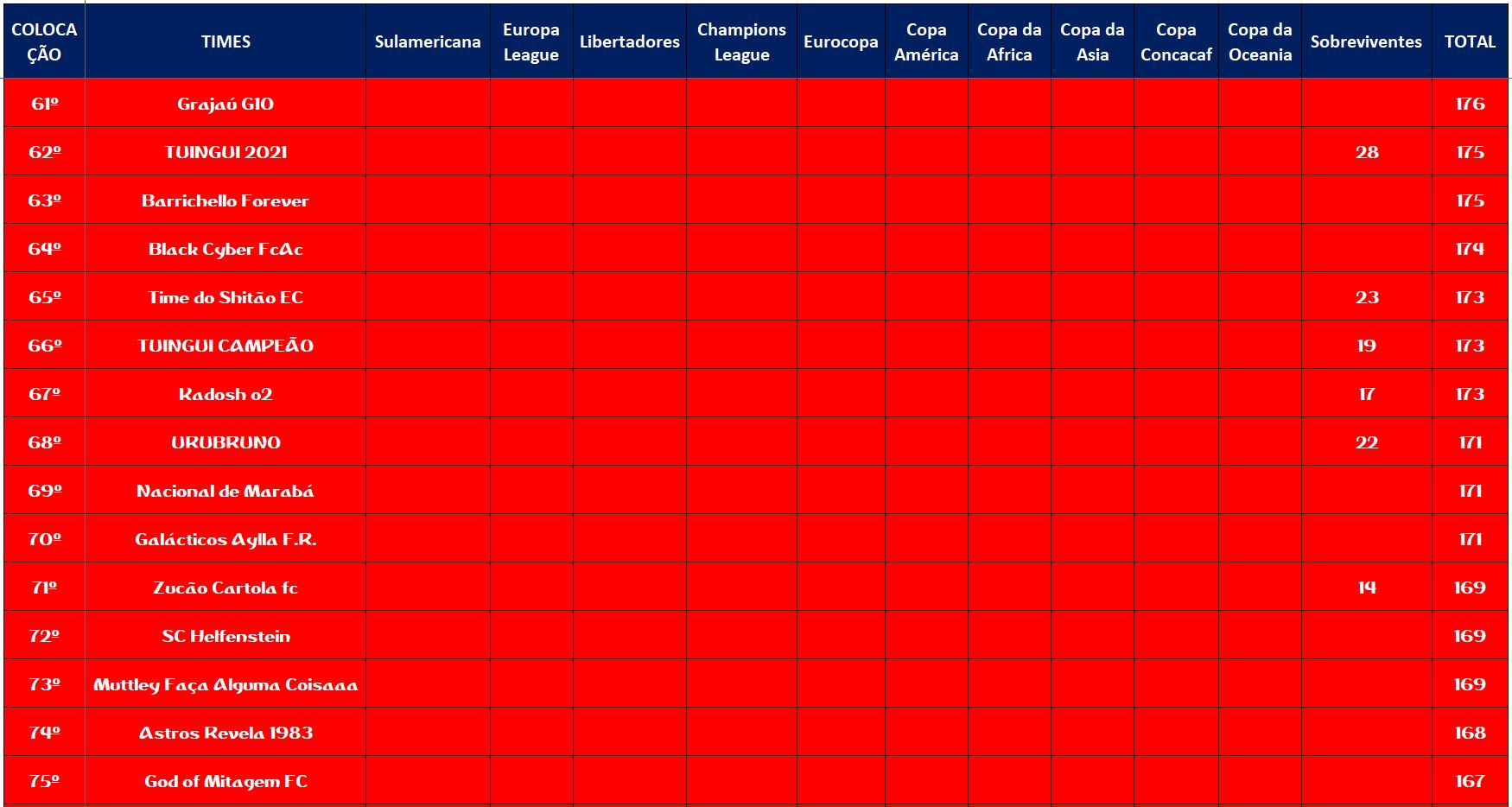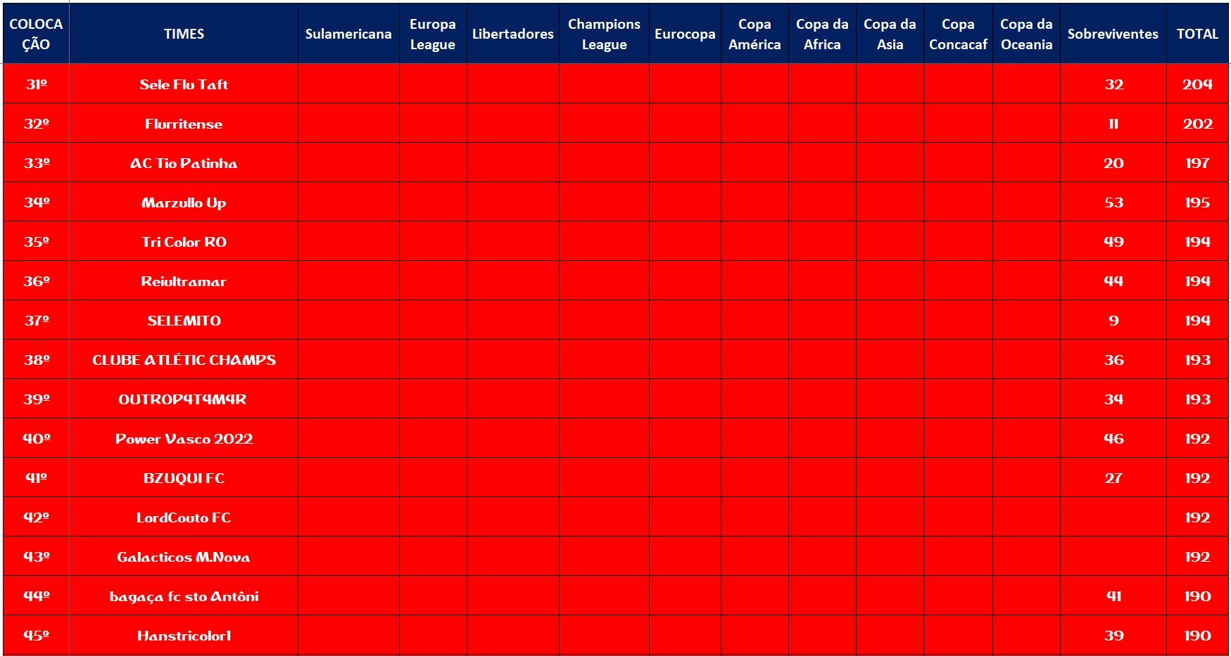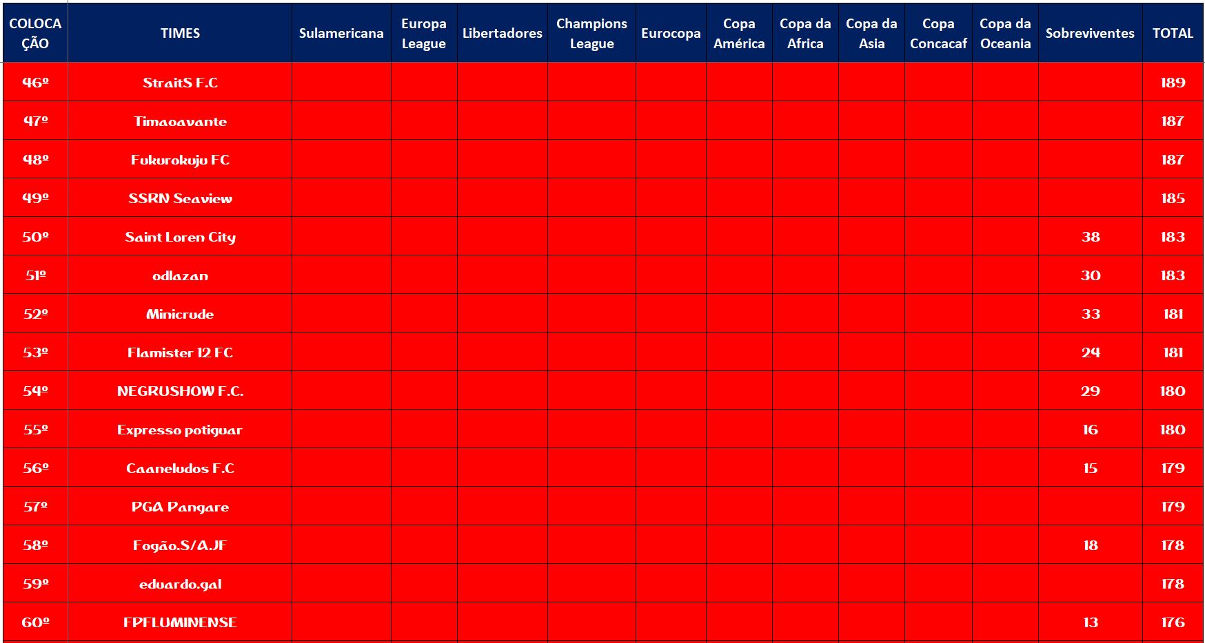 CLASSIFICAÇÃO – O MAIOR CAMPEONATOS DA HISTÓRIA