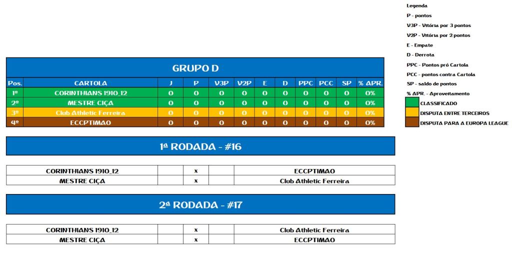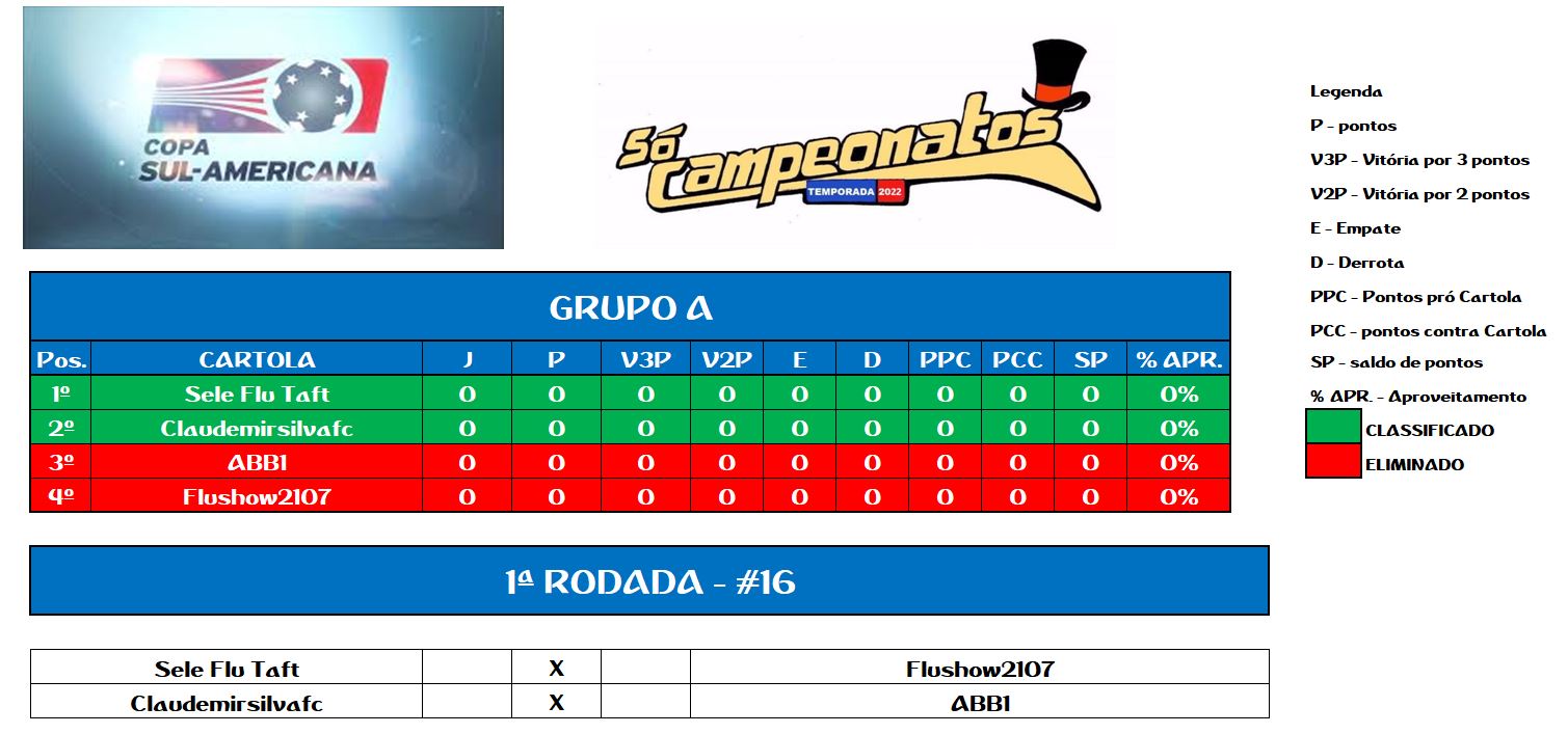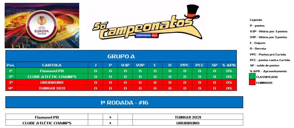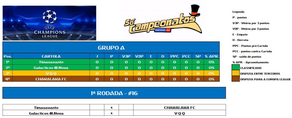 CHAMPIONS LEAGUE SOCAMPEONATOS TABELA