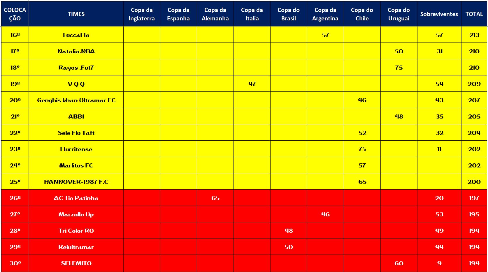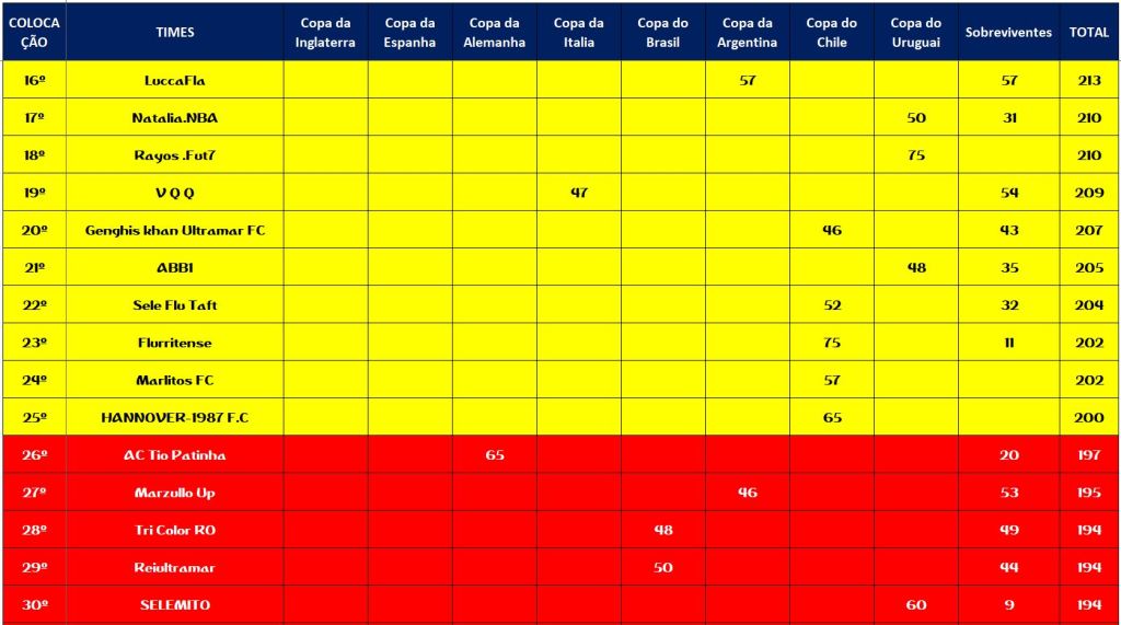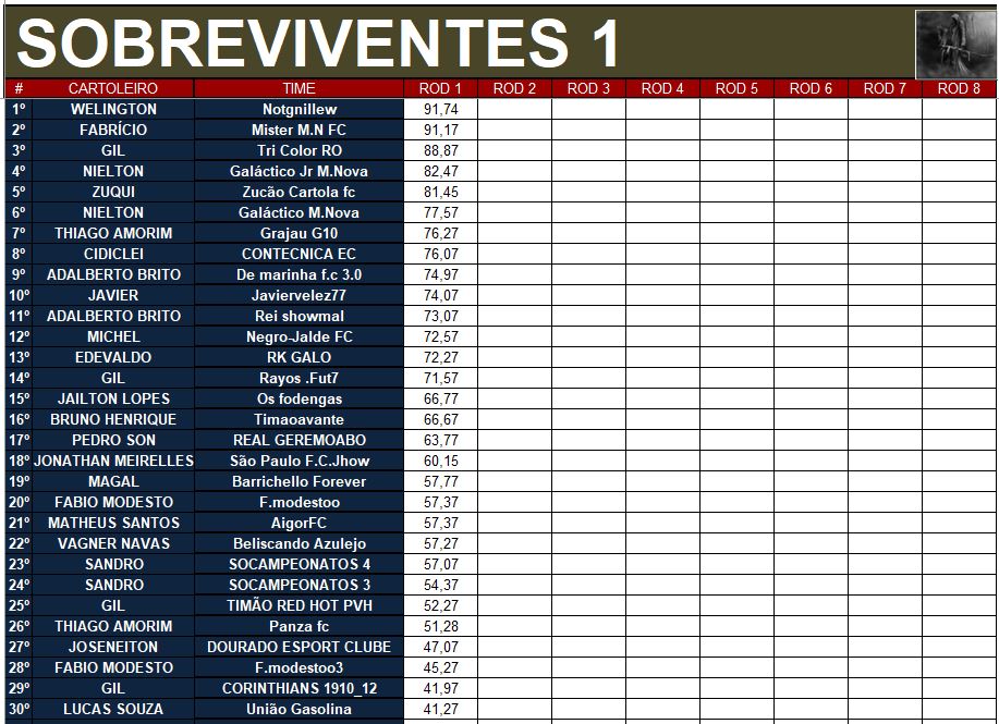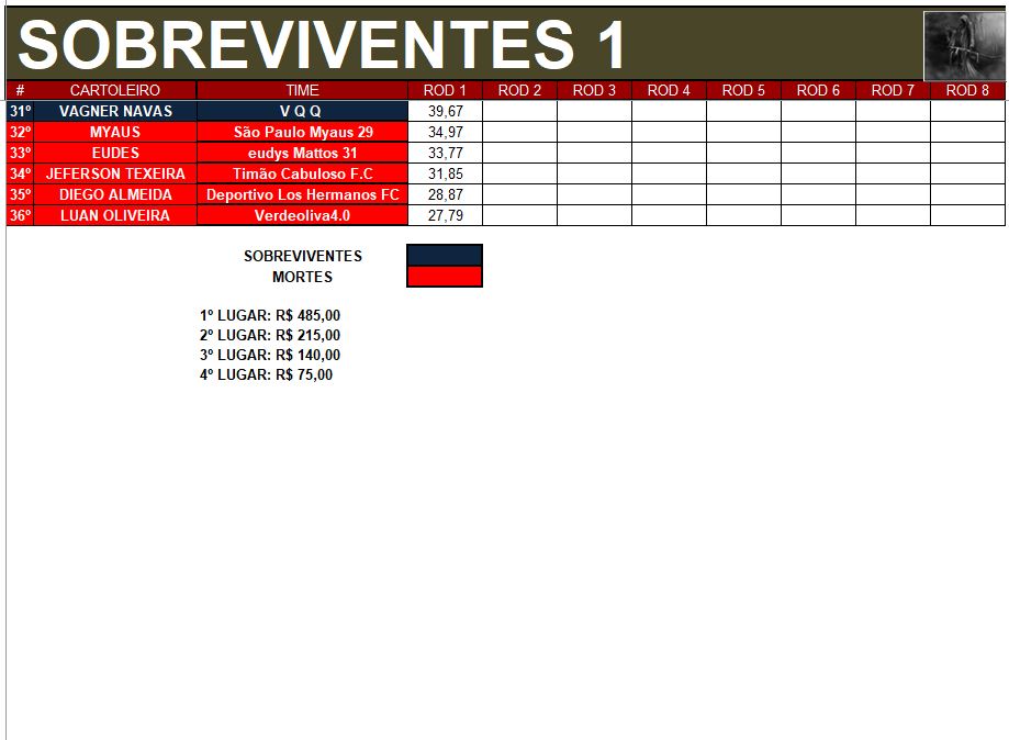 SOBREVIVENTES DA TEMPORADA – RODADA 15