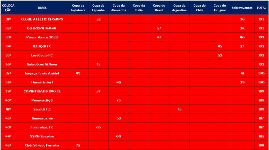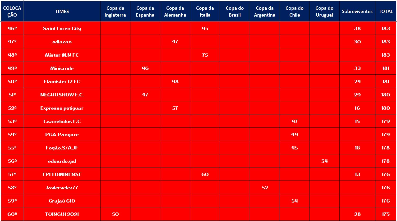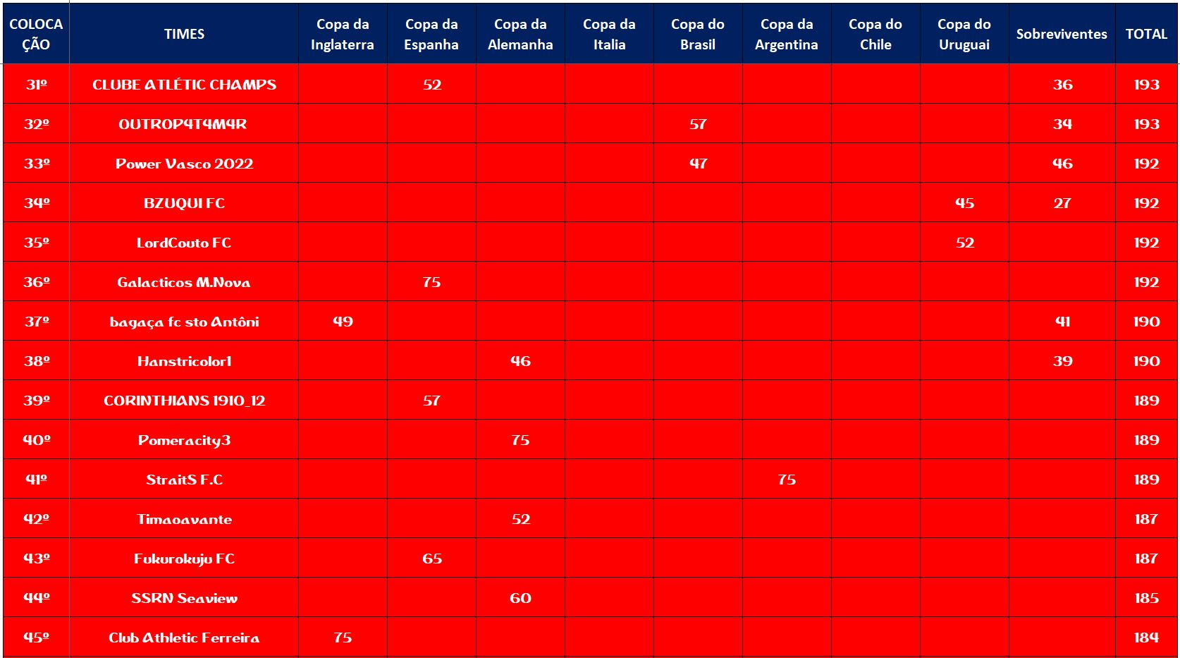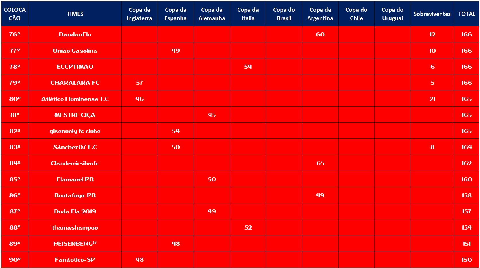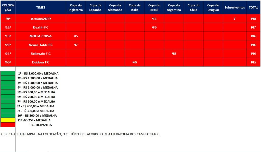 CLASSIFICAÇÃO – O MAIOR CAMPEONATOS DA HISTÓRIA