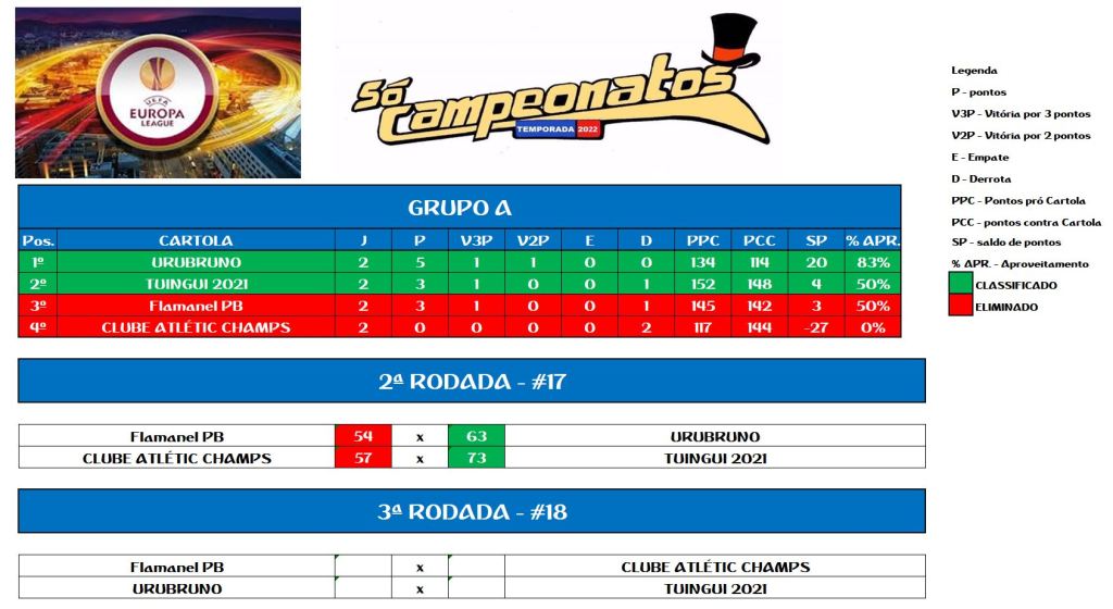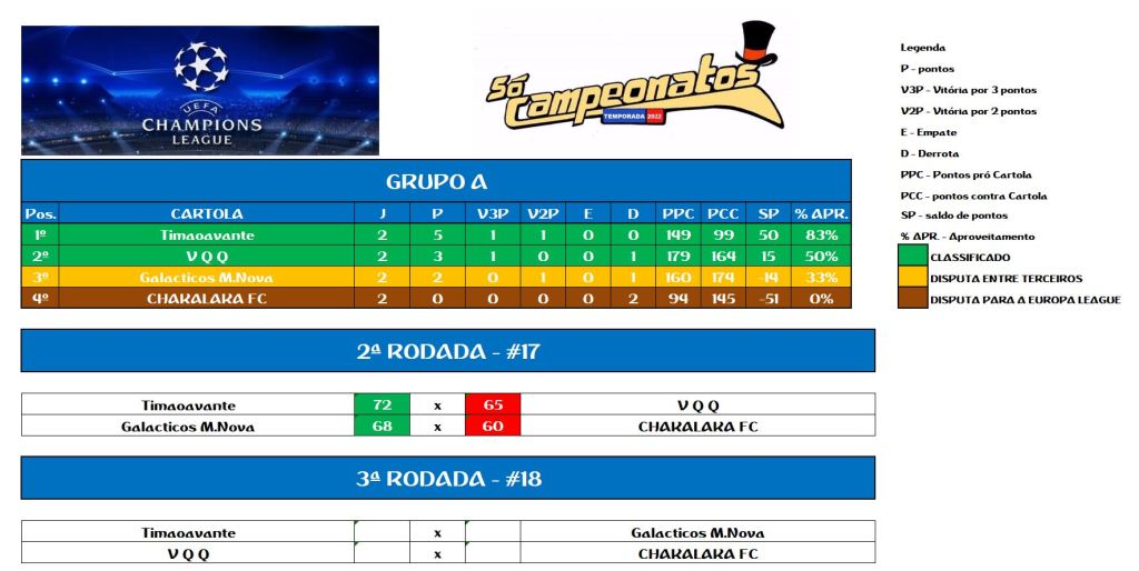 CHAMPIONS LEAGUE SOCAMPEONATOS TABELA