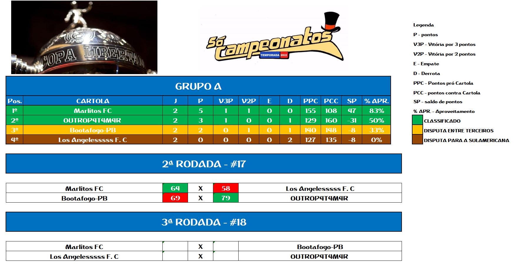LIBERTADORES SOCAMPEONATOS TABELA