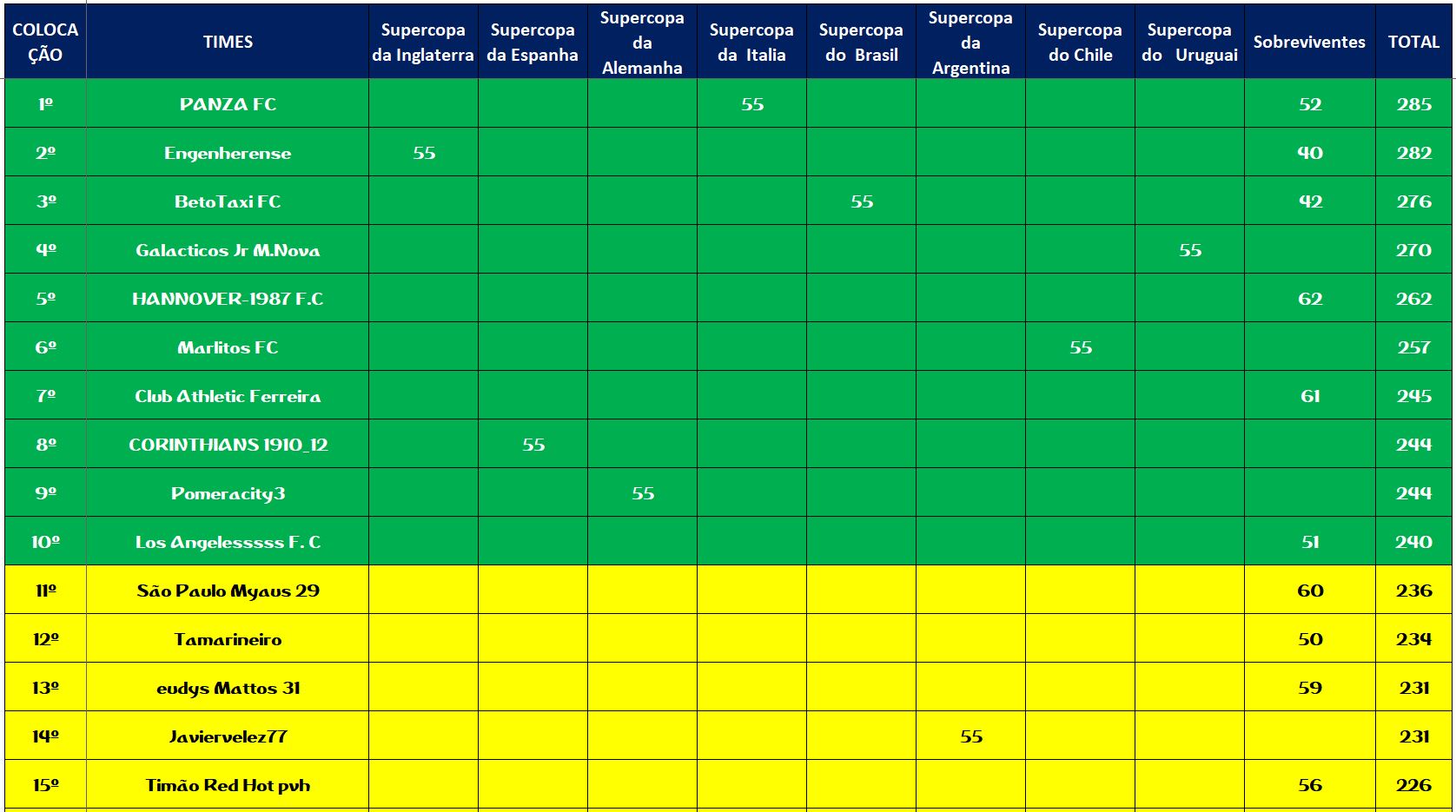 CLASSIFICADOS SUPER MUNDIAL SOCAMPEONATOS