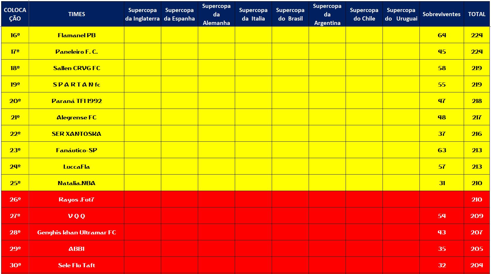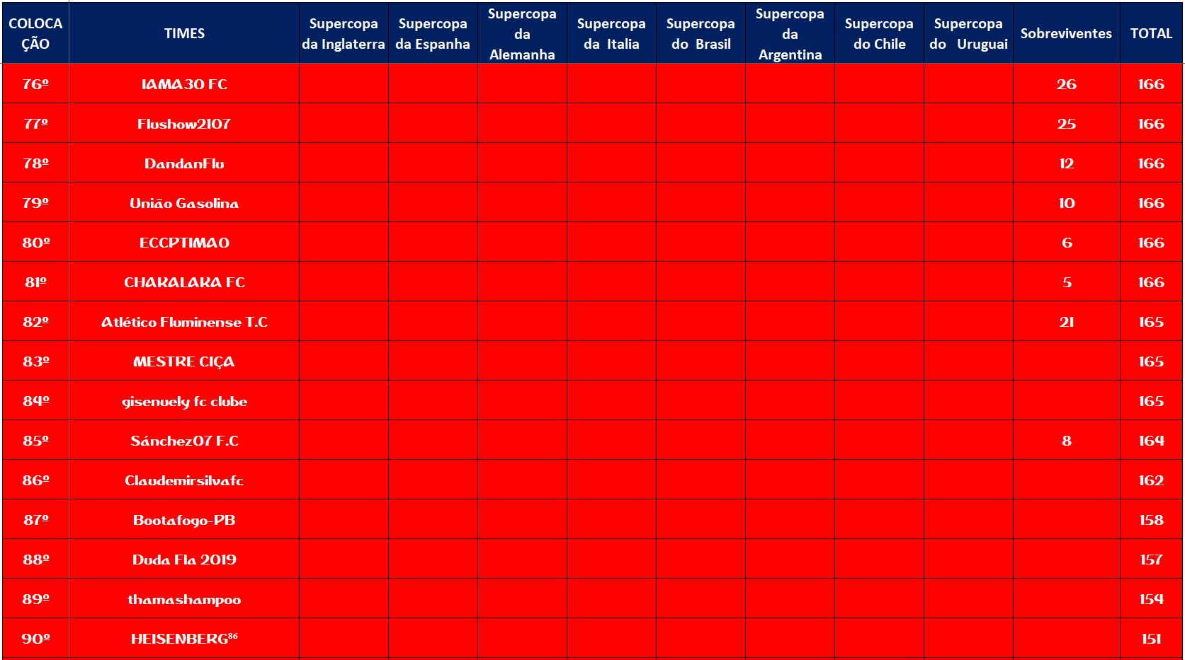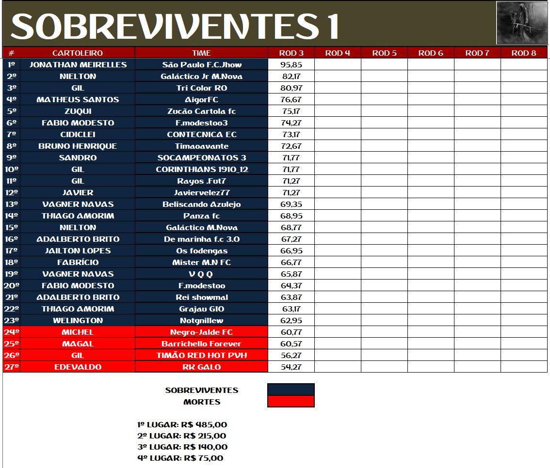 SOBREVIVENTES DA TEMPORADA – RODADA 17