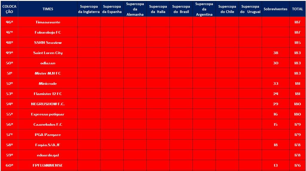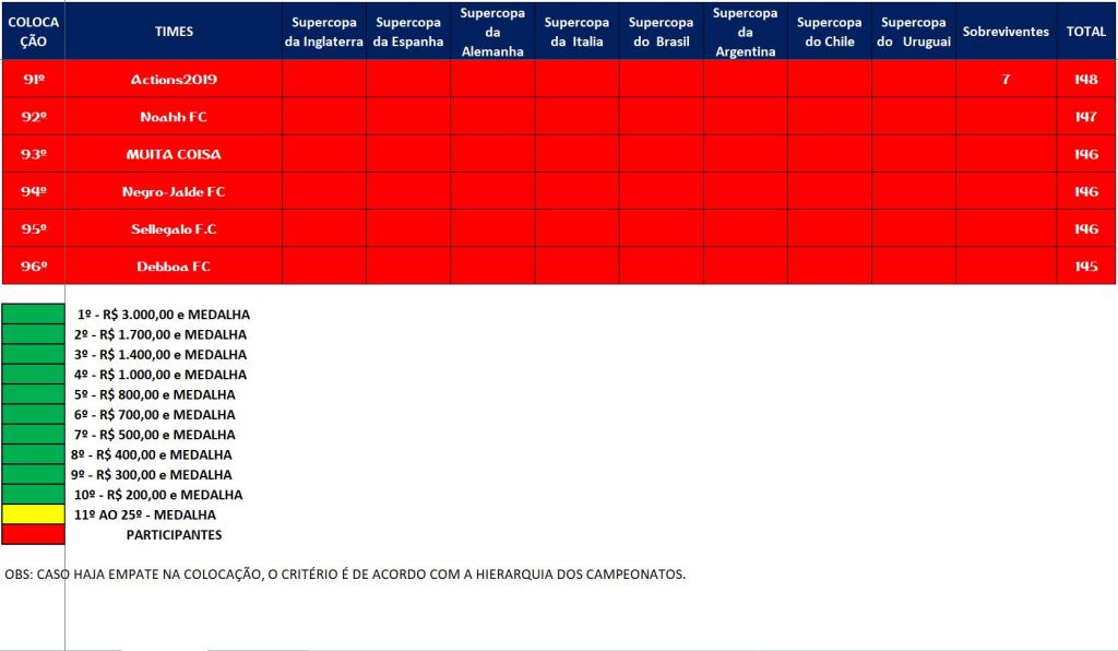 CLASSIFICAÇÃO – O MAIOR CAMPEONATOS DA HISTÓRIA