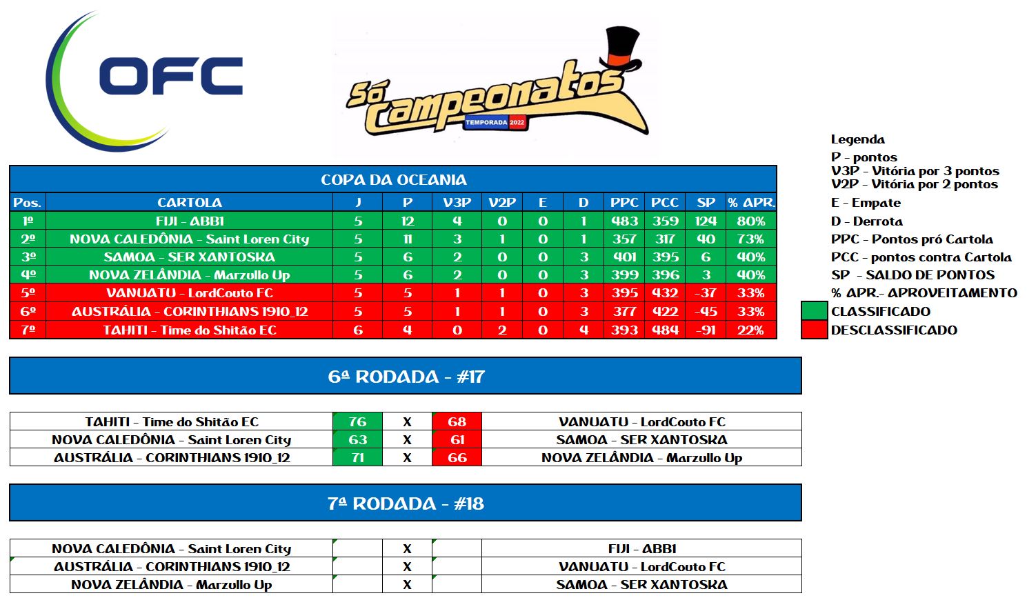 COPA DA OCEANIA – RODADA 6