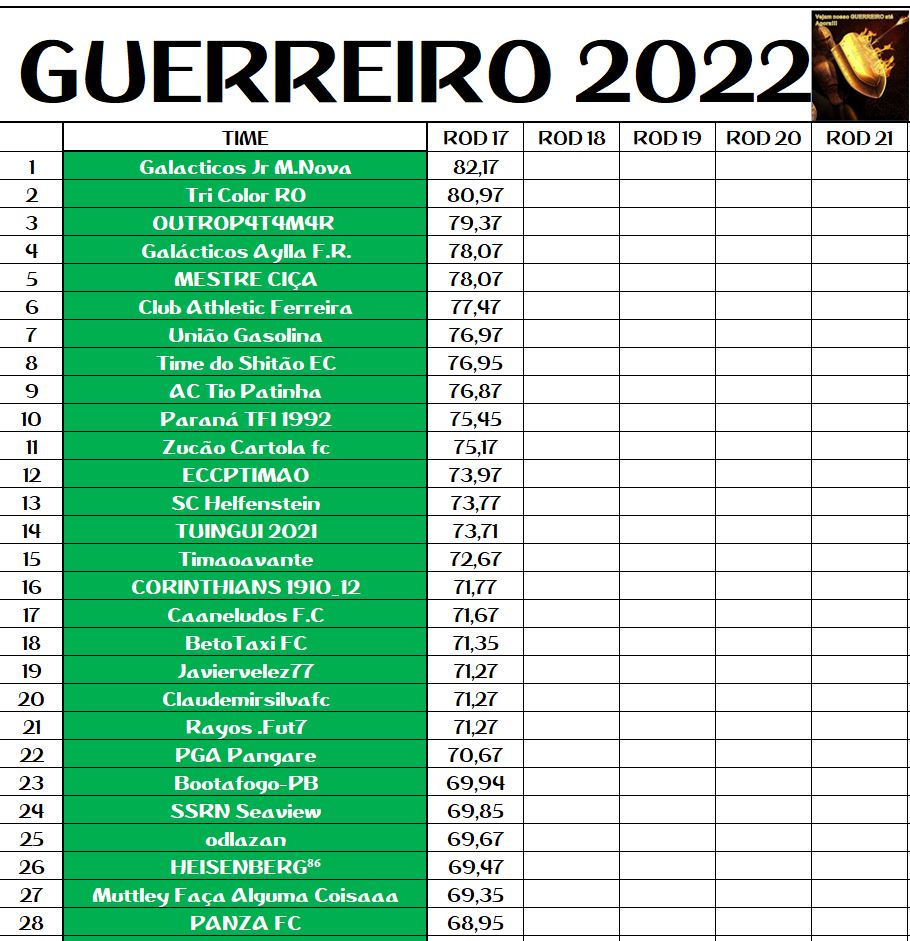 DISPUTA DO GUERREIRO – RODADA 17