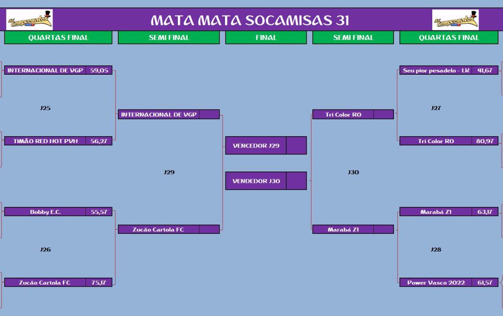 SOCAMISAS 31 – QUARTAS DE FINAIS