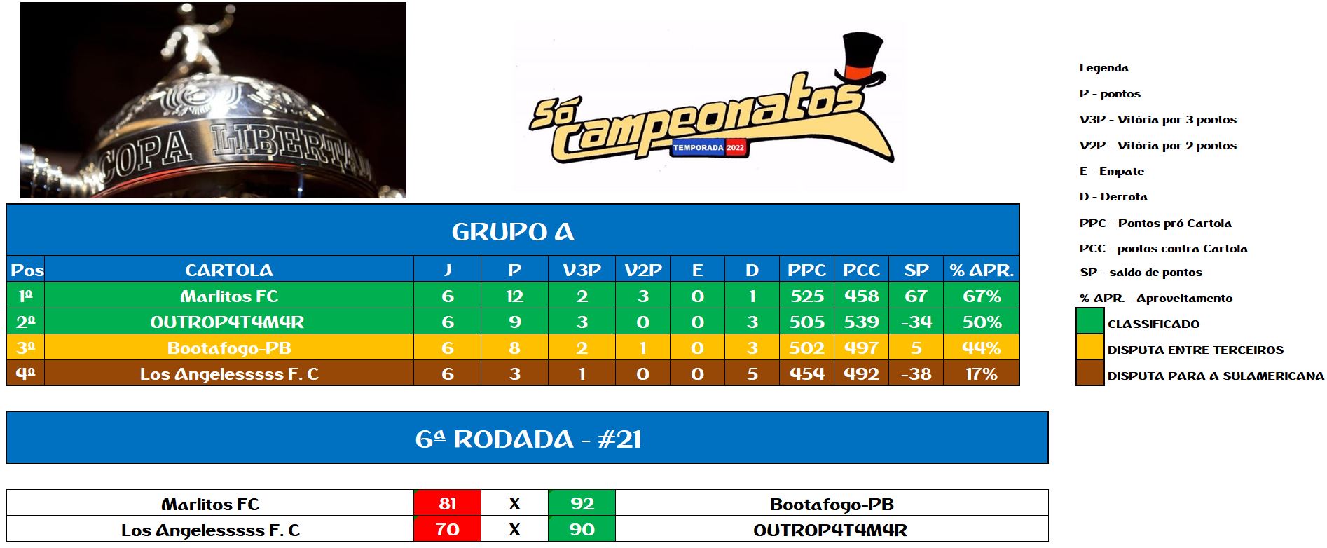 LIBERTADORES SOCAMPEONATOS TABELA