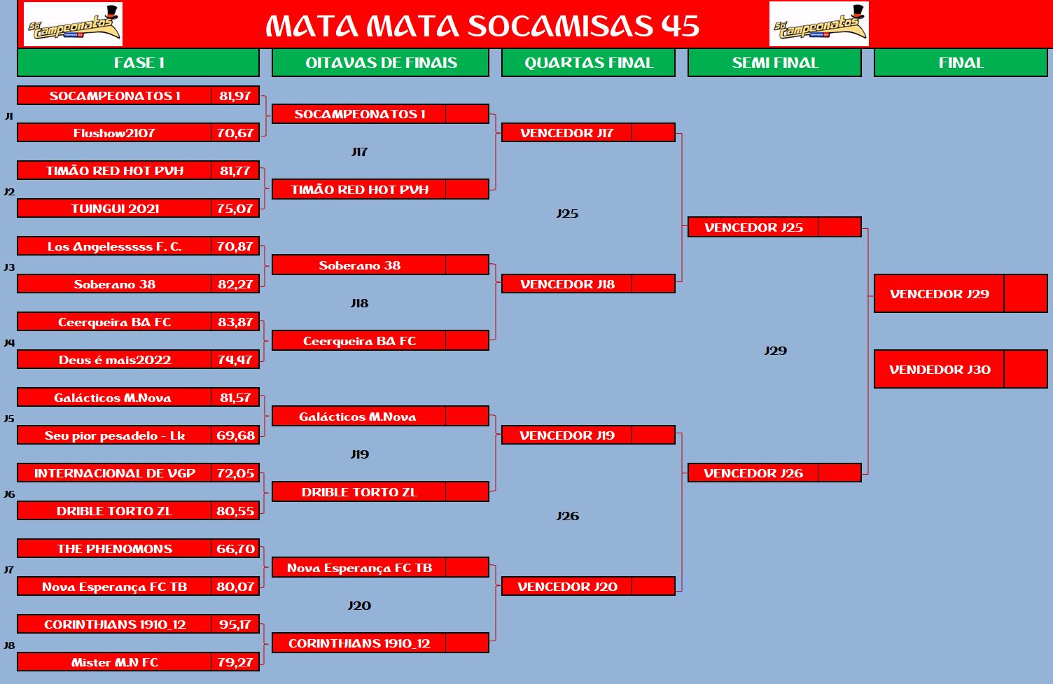 CHAMPIONS LEAGUE SOCAMPEONATOS TABELA