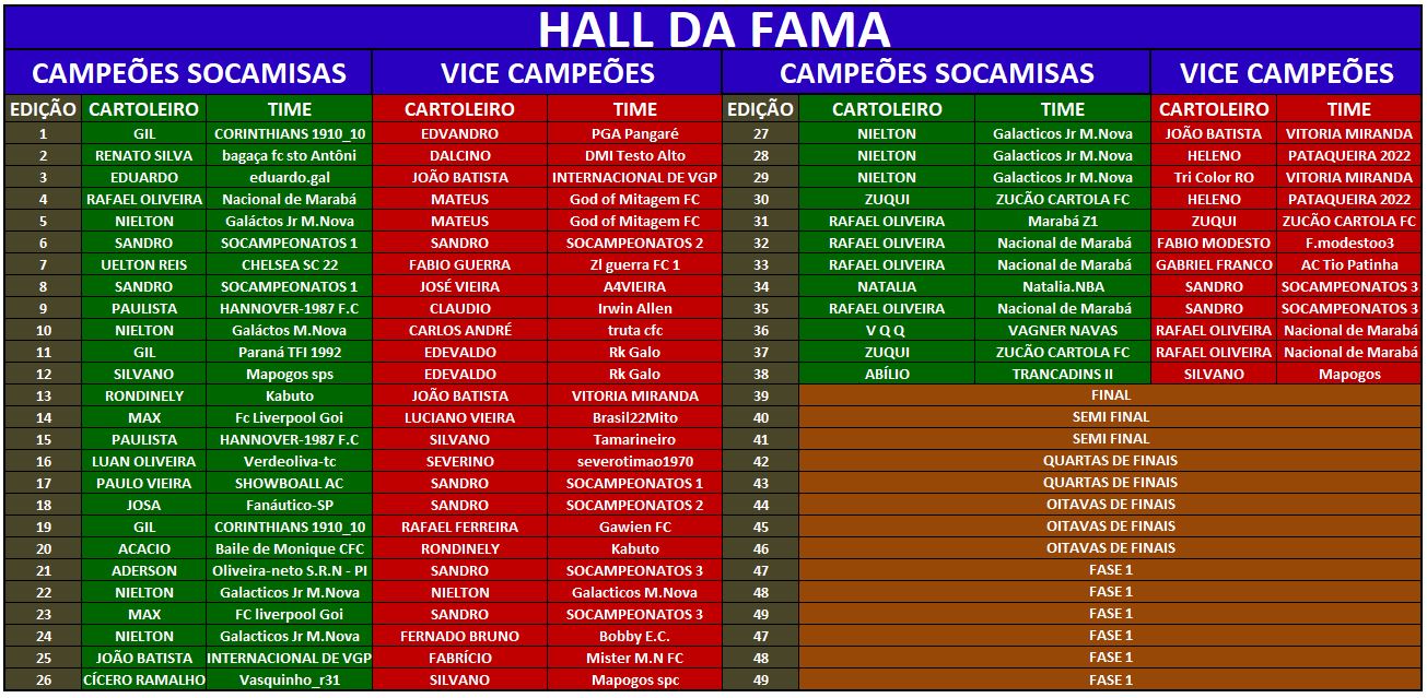 HALL DA FAMA – MATA MATA SOCAMISAS