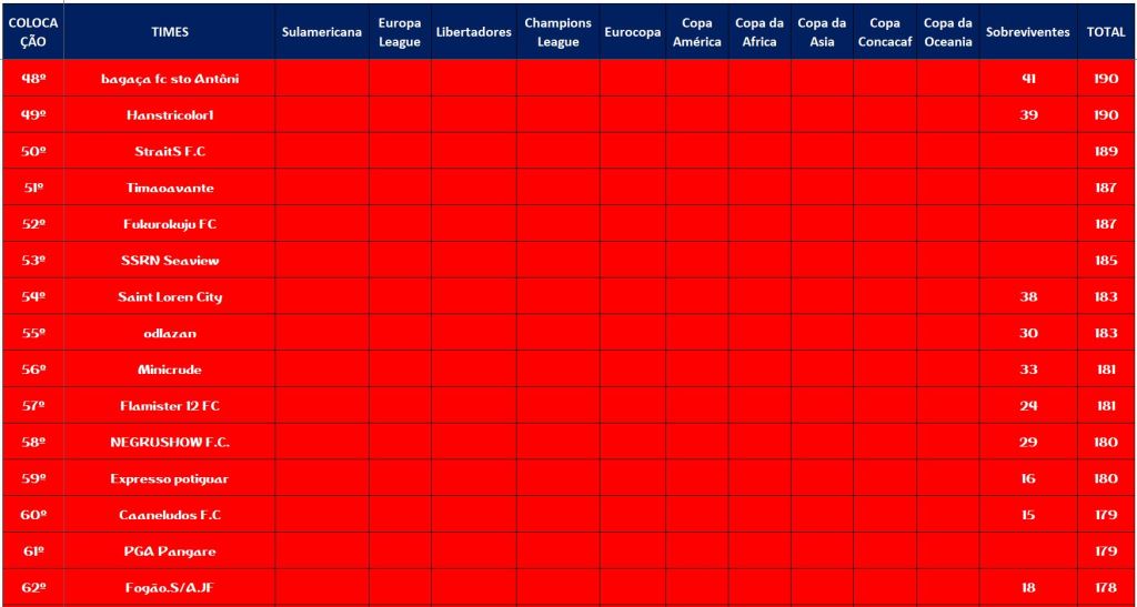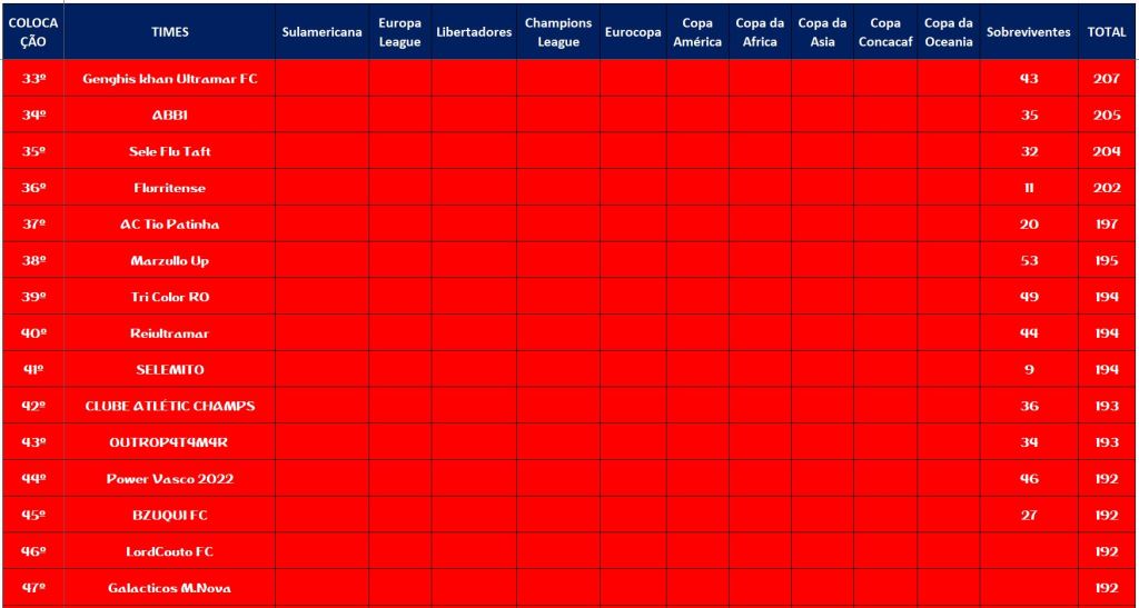 CLASSIFICAÇÃO – O MAIOR CAMPEONATOS DA HISTÓRIA