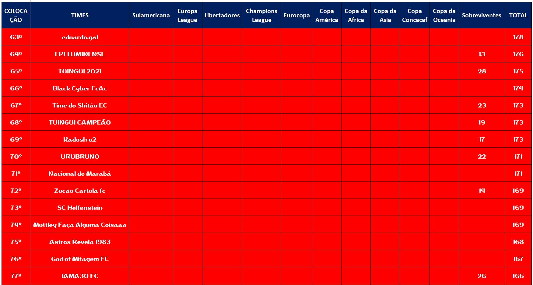SOBREVIVENTES DA TEMPORADA – RODADA 21