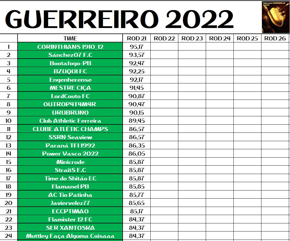 DISPUTA DO GUERREIRO – RODADA 21