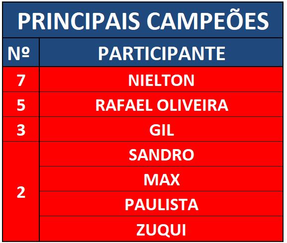 CAMPEÃO DISPUTAS DOS CAMPEONATOS