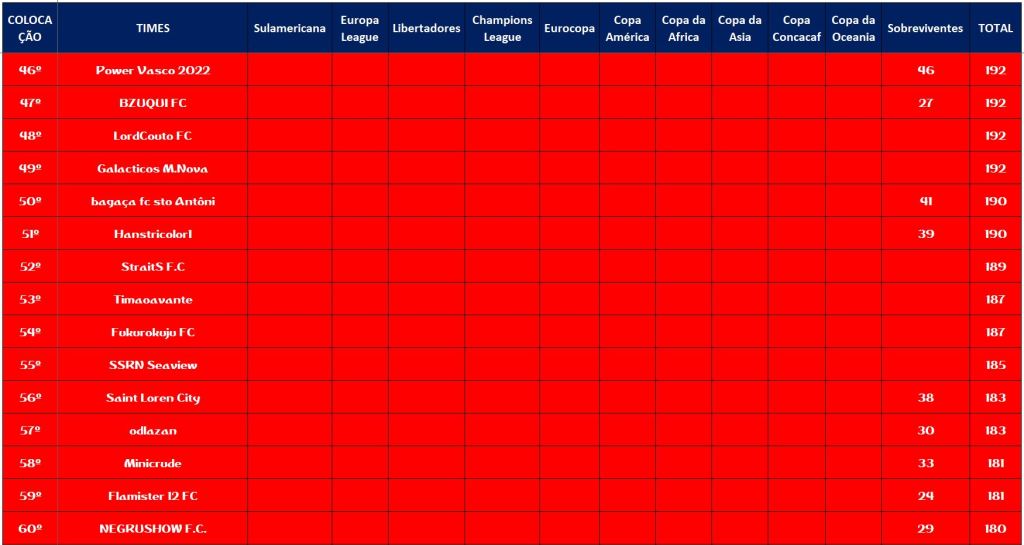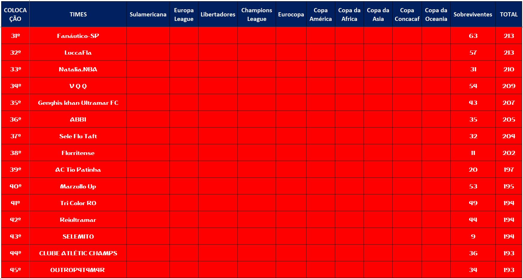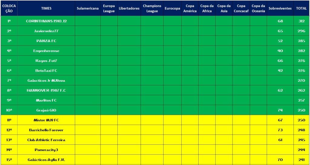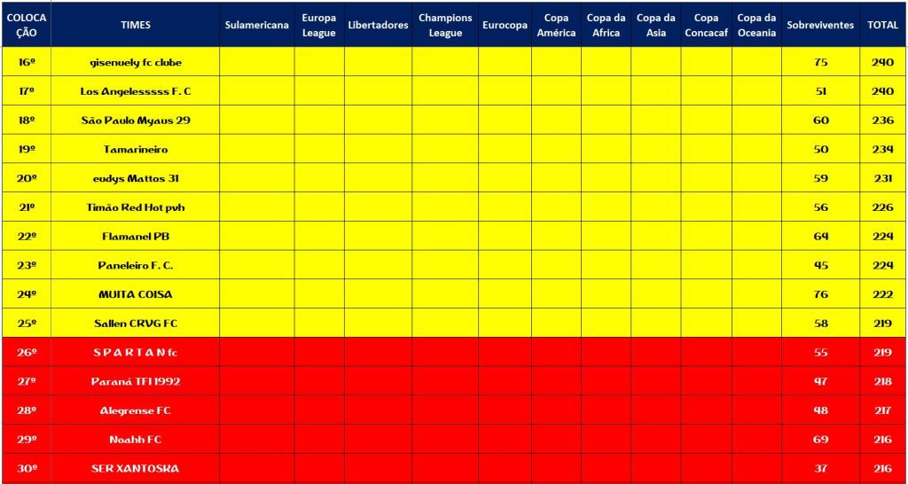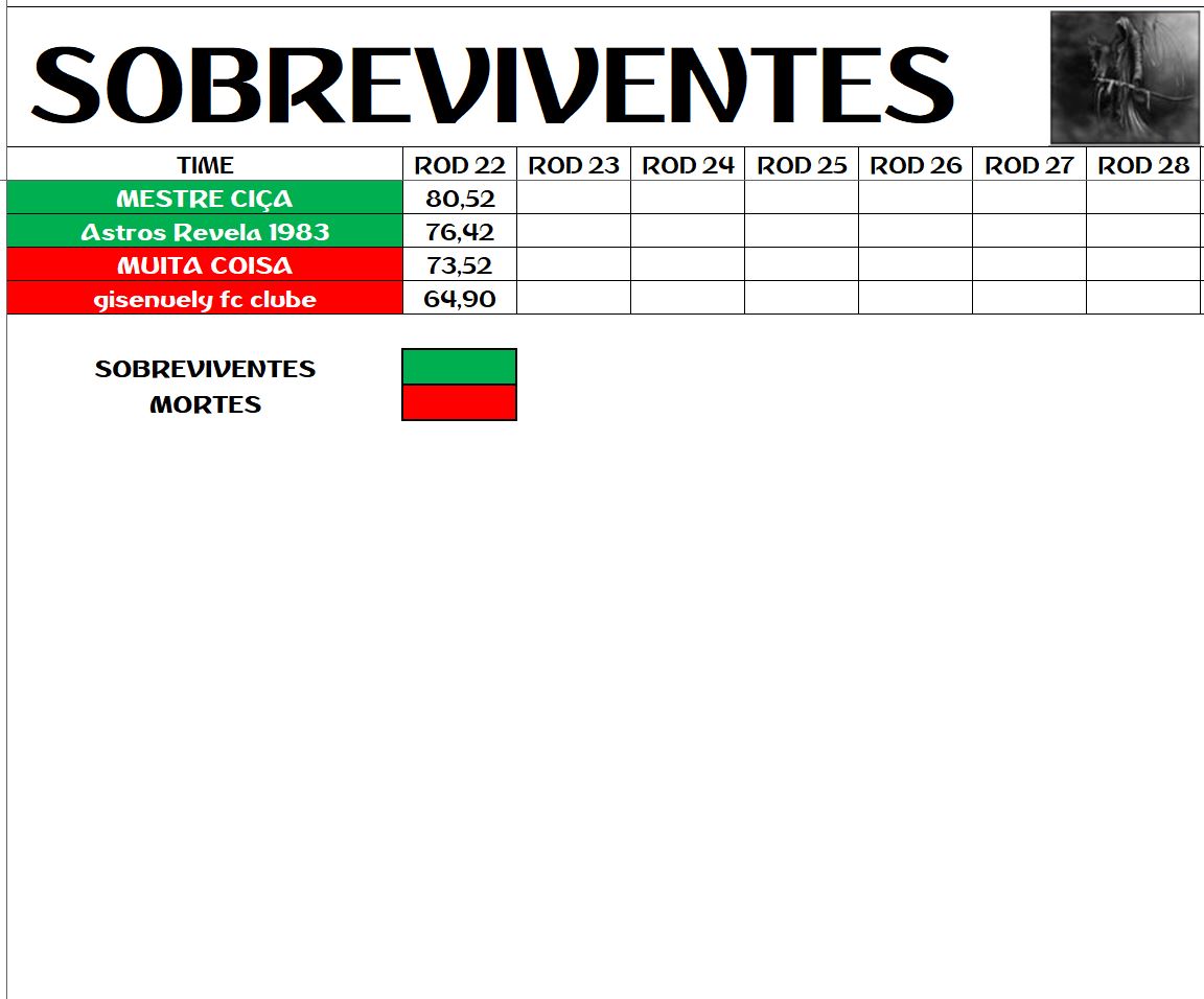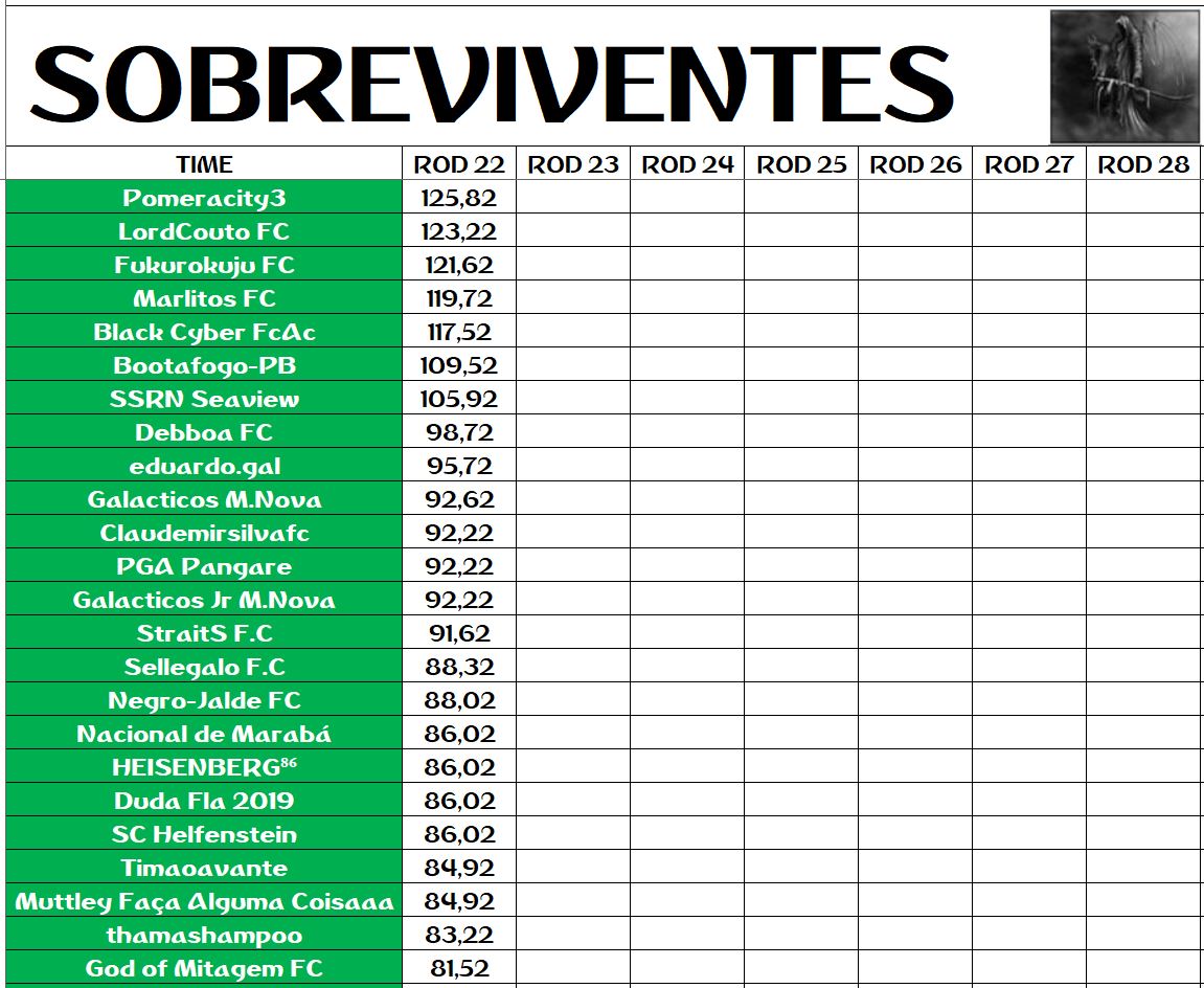 SOBREVIVENTES DA TEMPORADA – RODADA 22