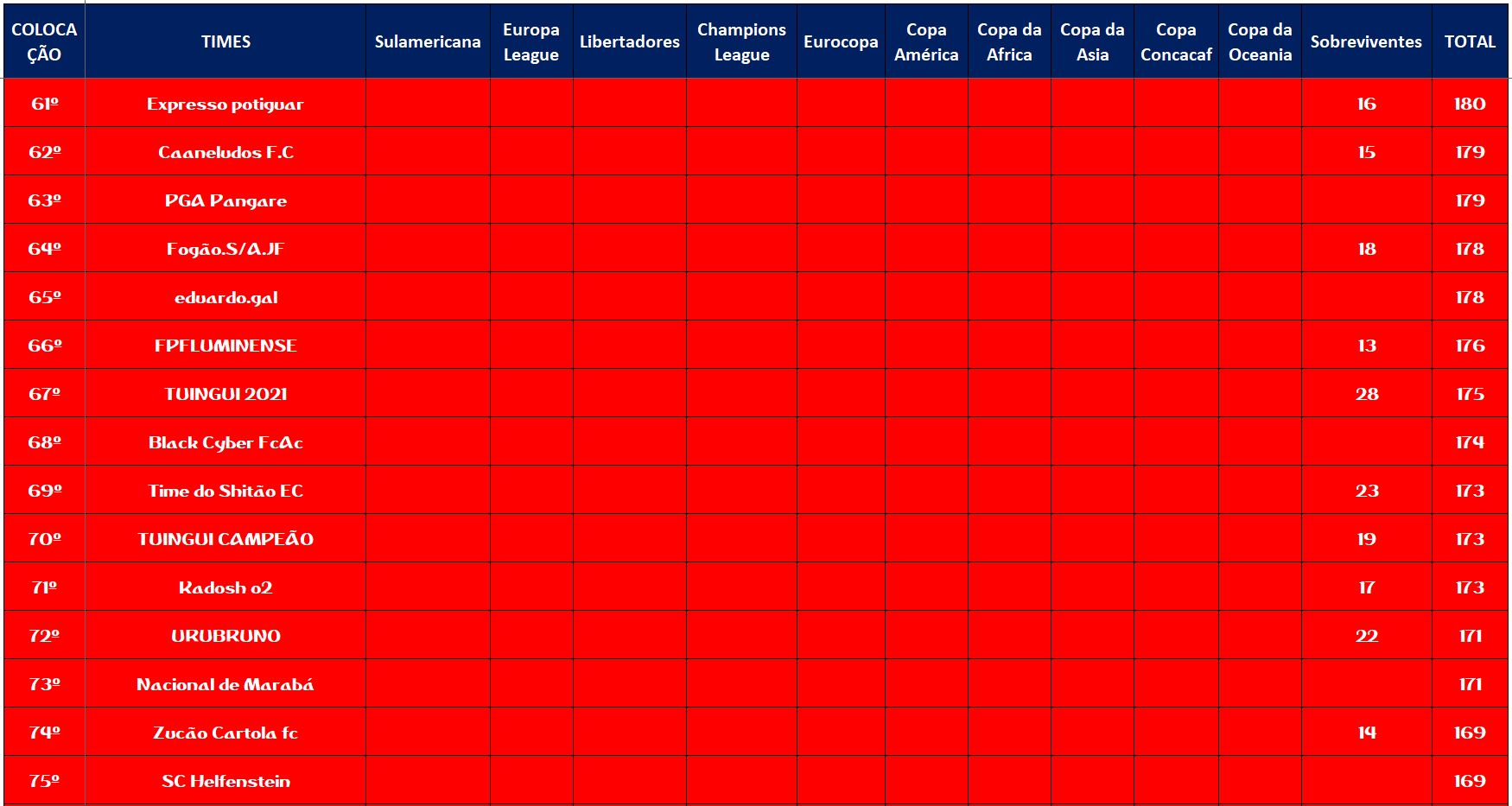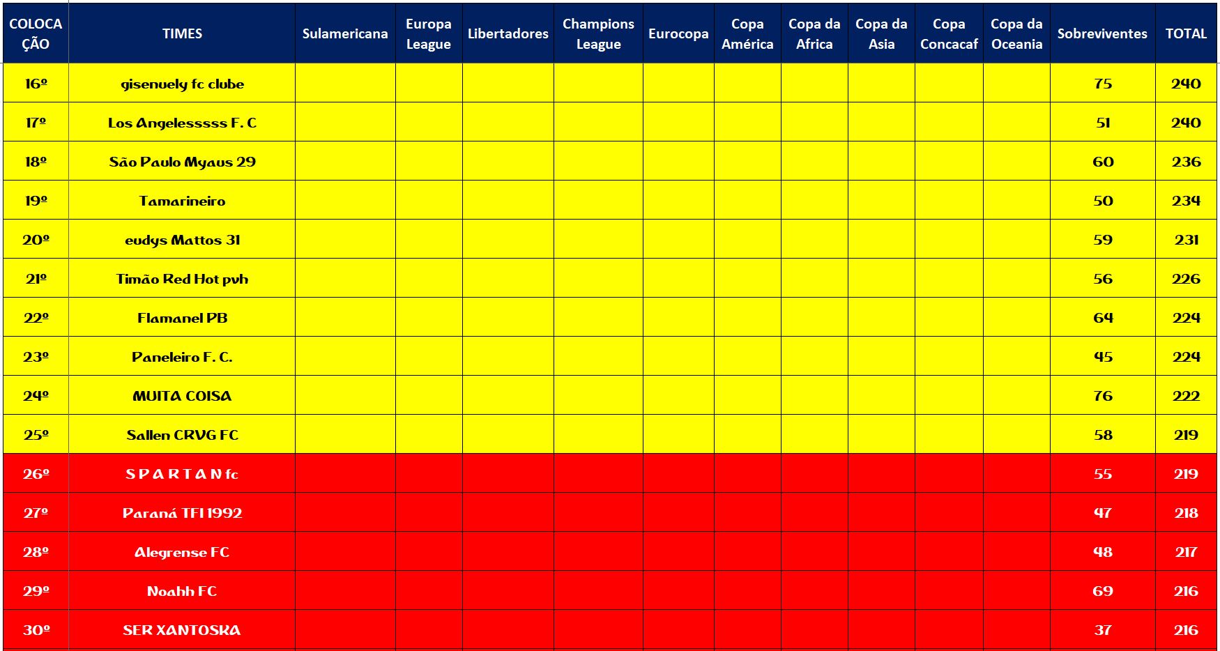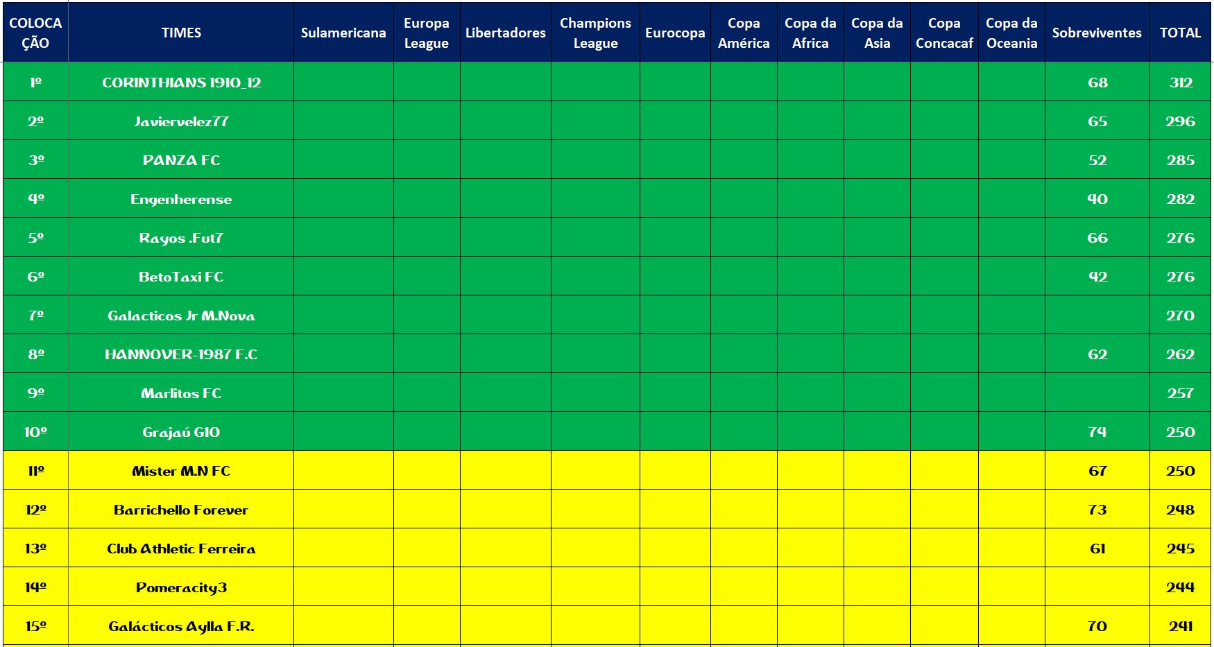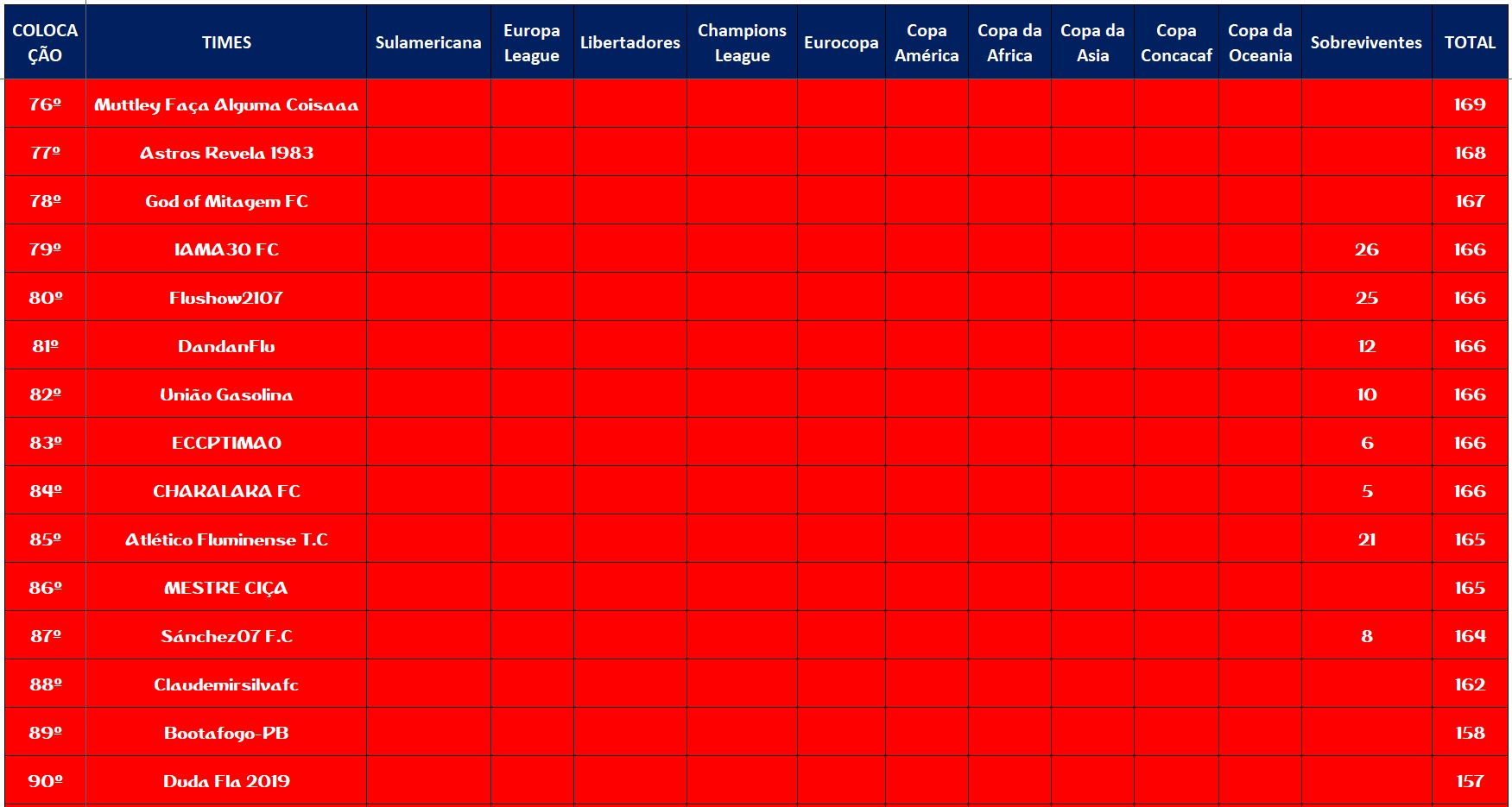 SOBREVIVENTES DA TEMPORADA – RODADA 22